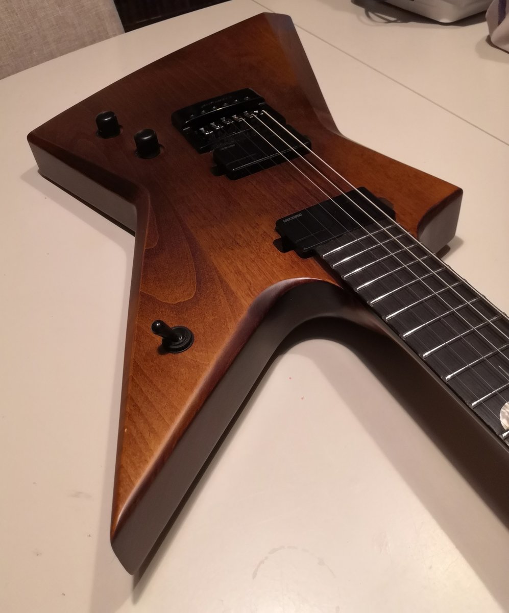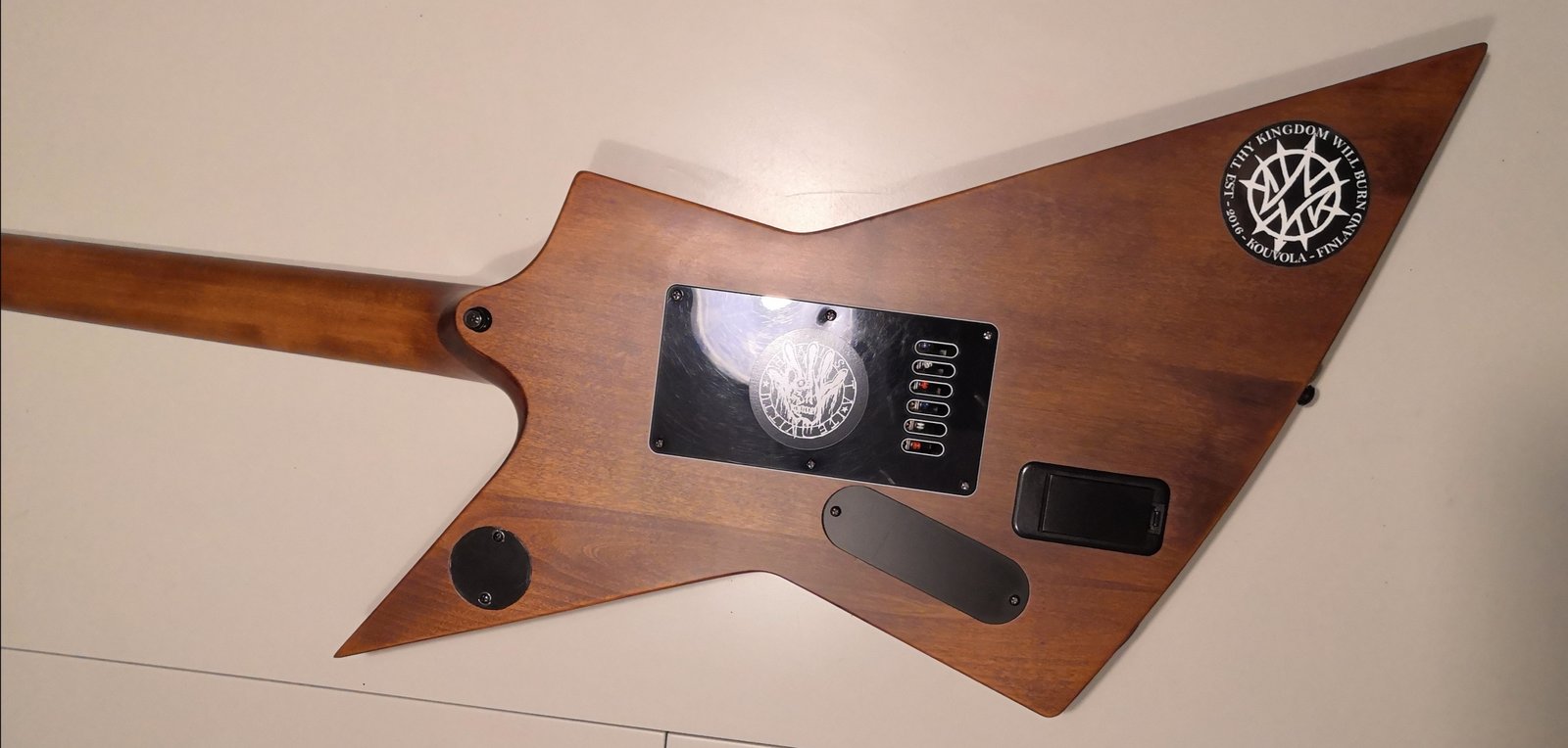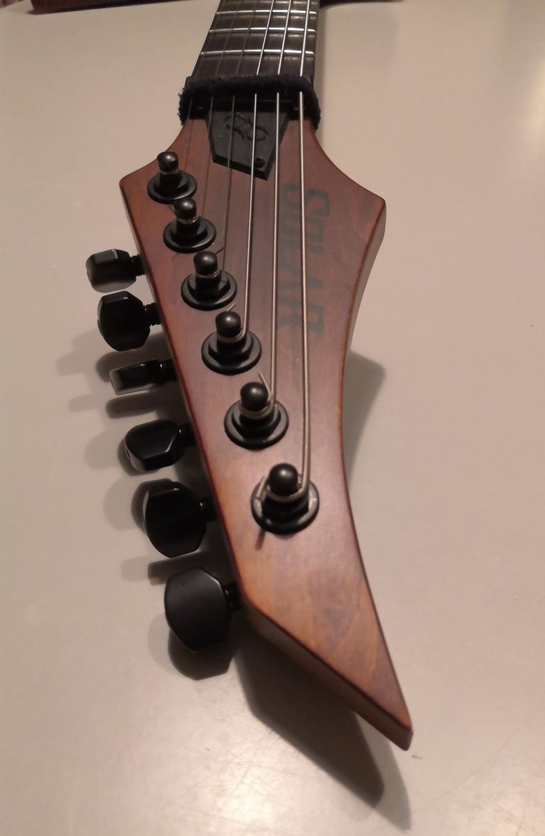 | Solar E1.6AAN Aged Natural Matte Alle kaksi vuotta vanha, ostettu uutena. Body: Alder Neck: Maple Fretboard: Ebony Neck profile: C Nut: PPS Nut width: 43 mm 24 Stainless steel super jumbo frets Scale: 629 mm Pickups: 2 Fishman Fluence Modern Humbuckers Volume control Tone control with push/pull function for voice change 3-Way switch Bridge: Evertune F-Type Machine heads: Solar 18:1 Hardware: Black Colour: Aged Natural Matte + hihna lukot. Pehmeä laukku. En vaihda mihinkään. Mieluummin nouto, mutta lähetys onnistuu varmaan jotenkin kun vahvistaa pehmeää laukkua. 1300¤ Hinta: 1300 € | |