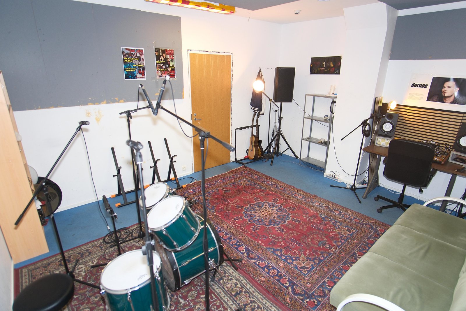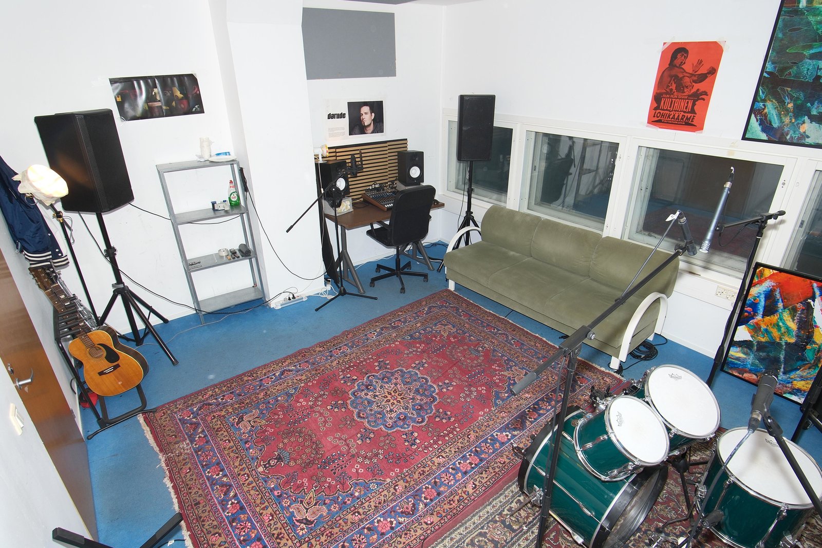 Ikkunallinen ja valmiiksi kalustettu kelluva treenis alivuokralle vähintään 4kk ajaksi. Tänne mahtuu useampikin bändi. Kämpällä valmiina hyvä PA, sohva, säilytystilaa, ja mahdollisesti muuta mitä kuvassa näkyy, alivuokralaisen tarpeesta riippuen. Vessat sekä mikrot ym löytyvät yleisistä tiloista. Daruden voitte ottaa tai jättää ;) | |