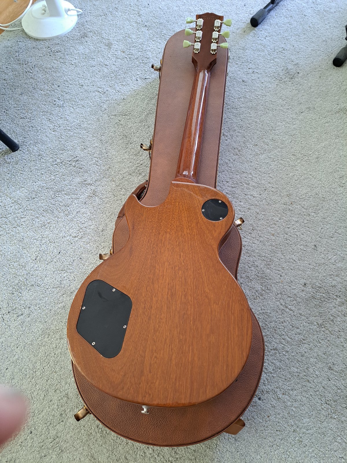 | Uutta vastaava tobacco burst vm.2019.Nauhat hiottu, hirvenluusatula. Huollon tehnyt Aurora Guitars. Kotelossa mukana huoltotositteet + muut lippulaput. Kitarassa burstbucker-mikit. Ei vaihtoja. Ostaja maksaa läh.kustannukset, jonka muodosta voimme keskustella. Ks. hinta! Hinta: 1700 € | |