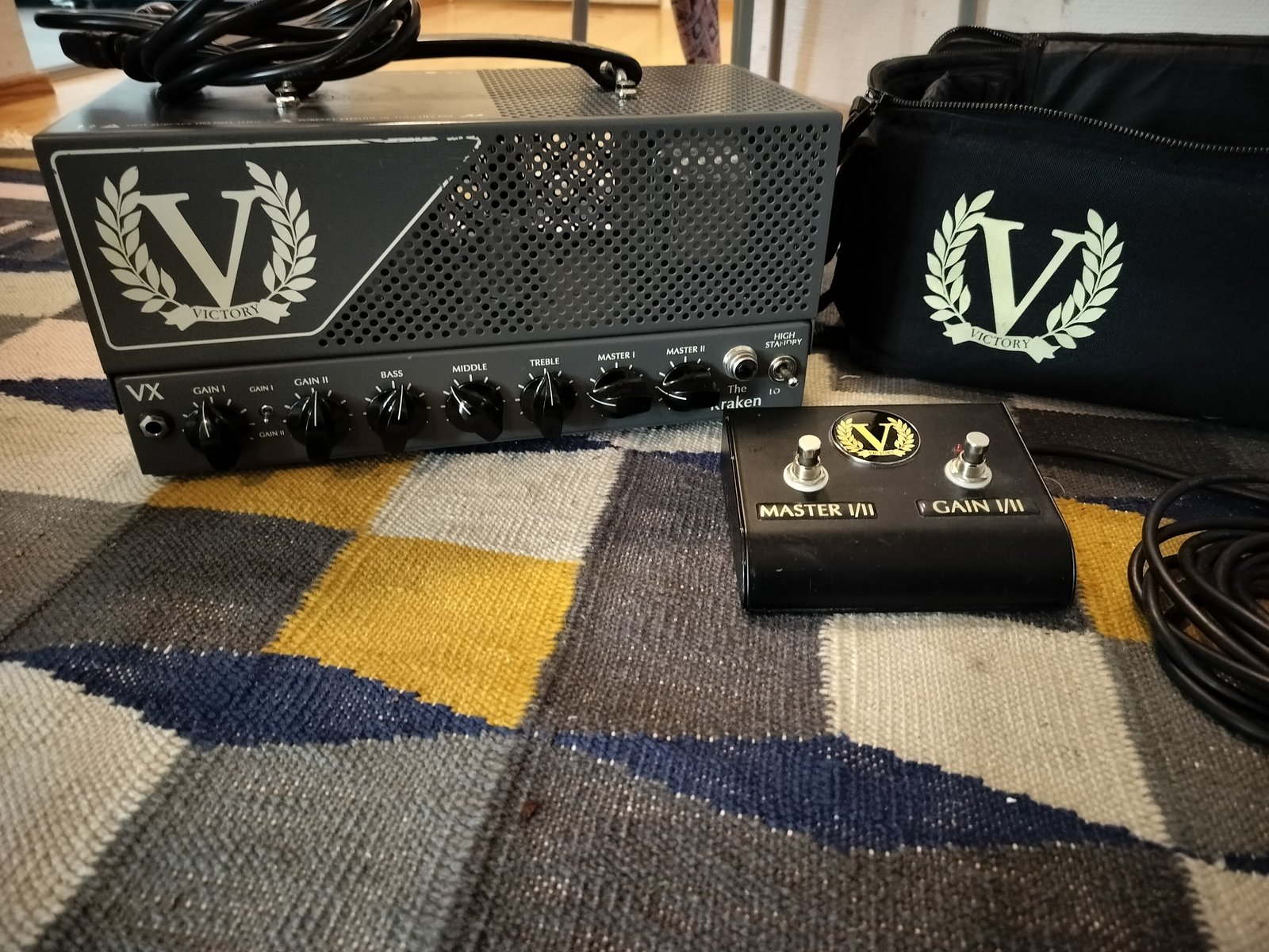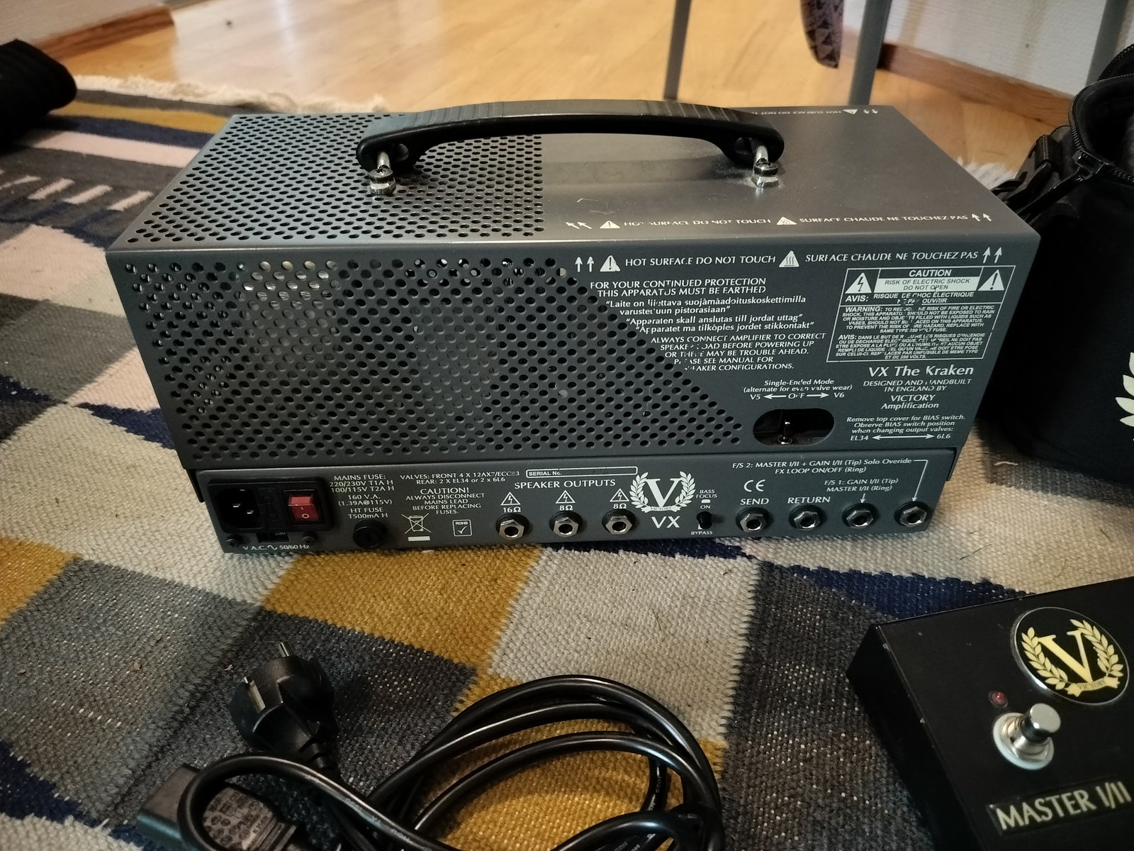Myydään Victory VX Kraken -nuppi. Vahvistin on ihan hyvässä kunnossa. Joitain jälkiä ulkokuoressa. Gigbagin toisessa päädyssä vetskari repsottaa, mutta laukku suojaa edelleen hyvin. Mukaan pedaali. Putket uusittu n. 6kk sitten. Muistaakseni varastosta löytyy myös 6L6-putket, jos ne ovat mieluisammat. Hyvä vahvistin, hyvä hinta. Lähettäminen onnistuu. Kulut kympin pintaan. Hinta: 600 € | |