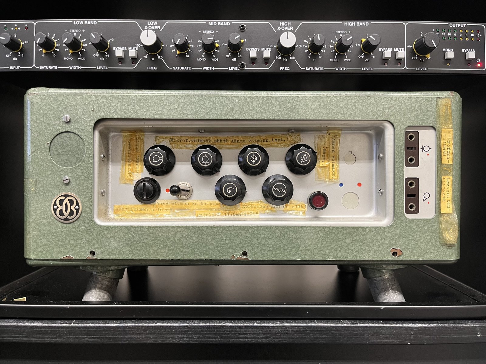 Ostin tämän tarkoituksena laitattaa tästä katseenkääntäjäksi kitara/studiovahvistin, mutta menkööt ajanpuutteen takia seuraavalle omistajalle. Kyseessä n. 1950-luvulta oleva putkivehje, joka ollut edellisellä omistajalla säilössä alkuperäisessä kantolaukussa (tulee mukana!) vuosikymmenet. Tästä puuttuu virtajohto, joten en päässyt koskaan laitetta käynnistelemään, mutta ymmärrykseni mukaan laite on muilta osin alkuperäisessä kunnossa. Tästä jollekin uniikki projekti studioon tai treenikselle! Nouto Helsingin Vallilasta Hinta: 150 € | |