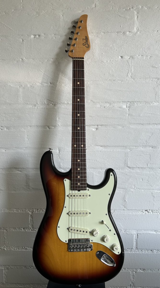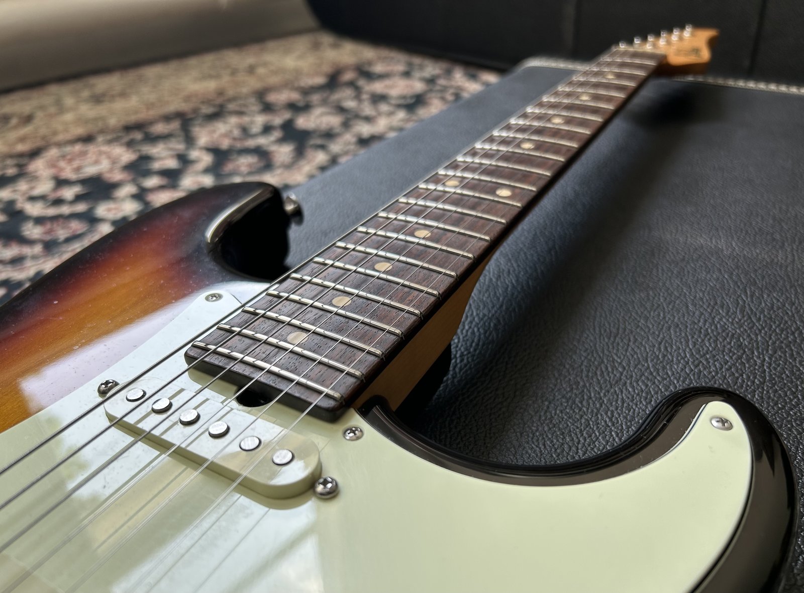 Upea Suhr Custom Classic S vuodelta 2004 eli ajalta, jolloin kaikki Suhrit tilattiin ”custom”-spekseillä. Kunto mint. 10-14” radius SS-nauhat V60LP mikit Aavistuksen paksumpi kaula kuin nyky sarjatuotantomalleissa .830-.950” Kova laukku Käynyt Scott Morganilla huollossa, nauhojen päät hiottu. Nauhojen levelöinti tarkistettu - ei aihetta hionnalle, oli kunnossa. Lähinnä myynti mielessä, mutta Joku laadukas putkivahvistinkin voisi käydä esim. Fenderin kombot. Hinta: 2400 € | |