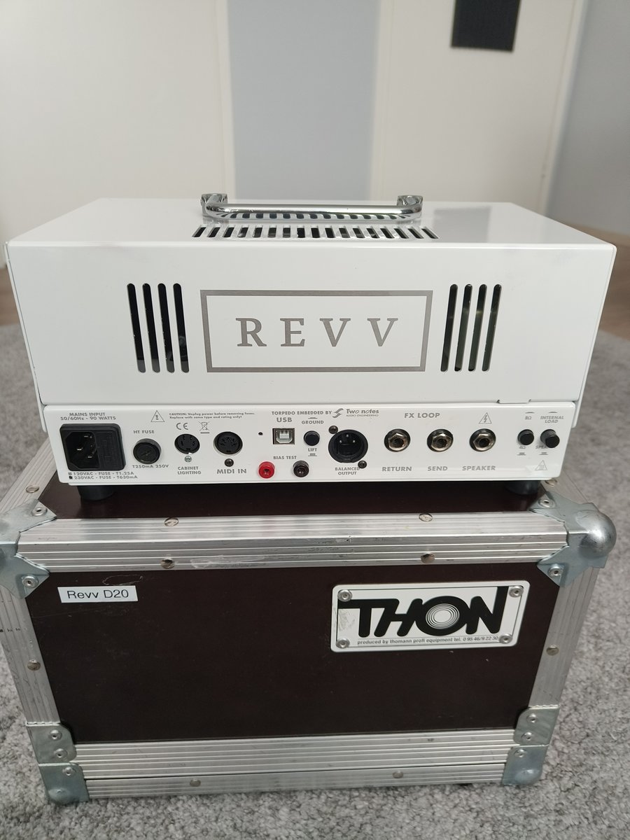 Laadukas nuppi, joka yhdistää aidon putkisoundin ja modernin monipuolisuuden kompaktissa paketissa. Tämä on ollut viimeiset vuodet pääasiallinen työhevoseni sekä keikoilla että studiossa ja se on toiminut luotettavasti joka tilanteessa. -20 W / 4 W putkitehoa – toimii sekä bändivolumella että kotitasolla. -Two Notes Torpedo -teknologia sisäänrakennettuna: Reactive load ja suora IR -ulostulo ilman kaiutinkaappia. -Monipuolinen Clean/Crunch-kanava. Mainio alusta pedaaleille. -Paino vain n. 4 kg – helppo kuljettaa. Diiliin kuuluu luja roadcase sekä topattu pussi kevyempään menoon. -Two notes lisenssin mukana tulee läjä IR-kaiutinkaappeja ja Genome mallinnussofta. (PC/Mac) -Pääteputket uusittu kesällä (JJ 6V6 GT). Etuasteessa hyväkuntoiset Tung-Solit. -Ainut "vika" on etupaneelin toiselta laidalta himmentyneet ledit. Tämä on puhtaasti kosmeettista eikä vaikuta toimintaan. Katso kuva. https://www.thomann.de/fi/revv_d20_amp_head.htm https://www.thomann.de/fi/thon_amp_case_revv_g20.htm Ei vaihtoja. Hinta: 800 € | |