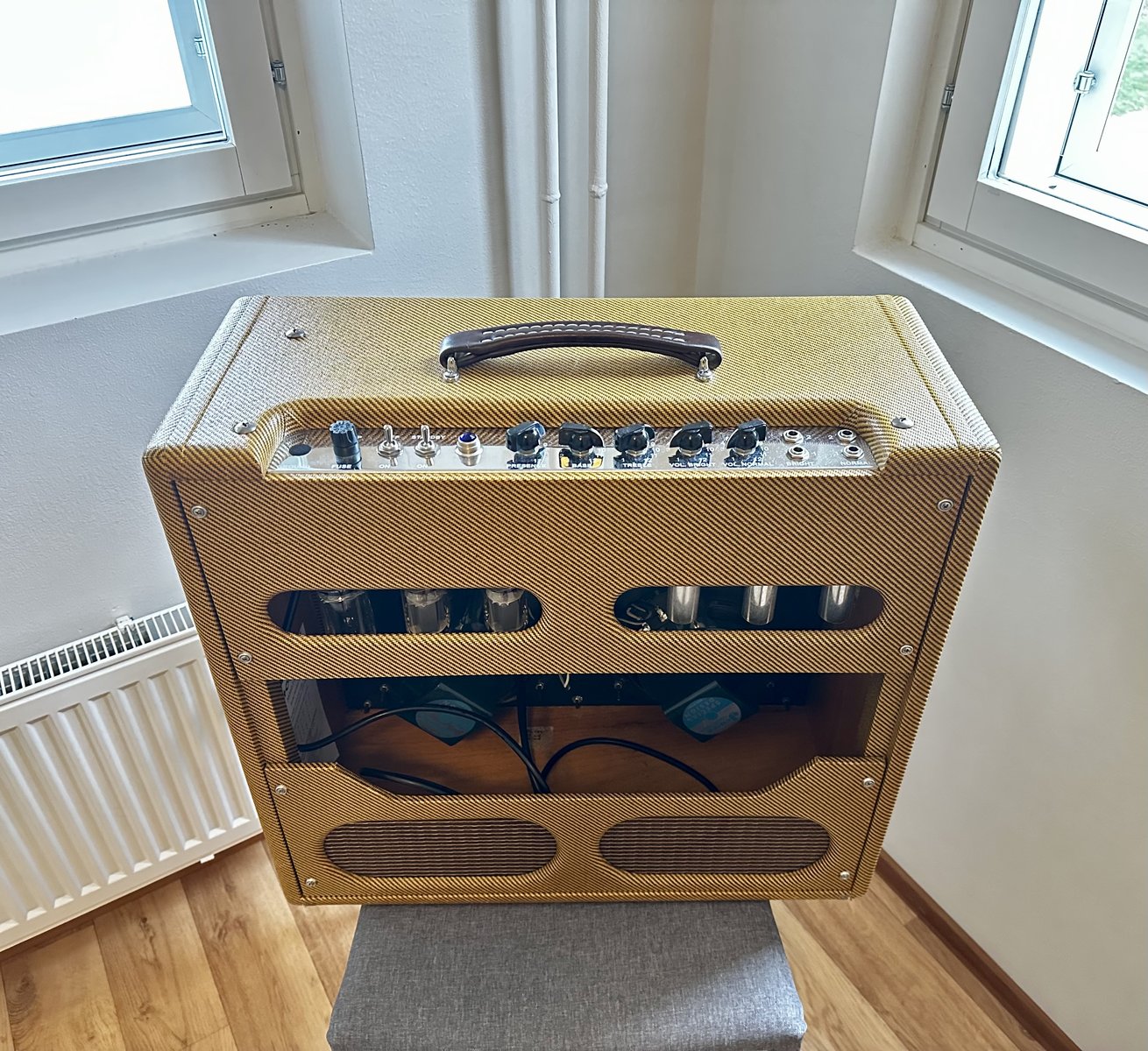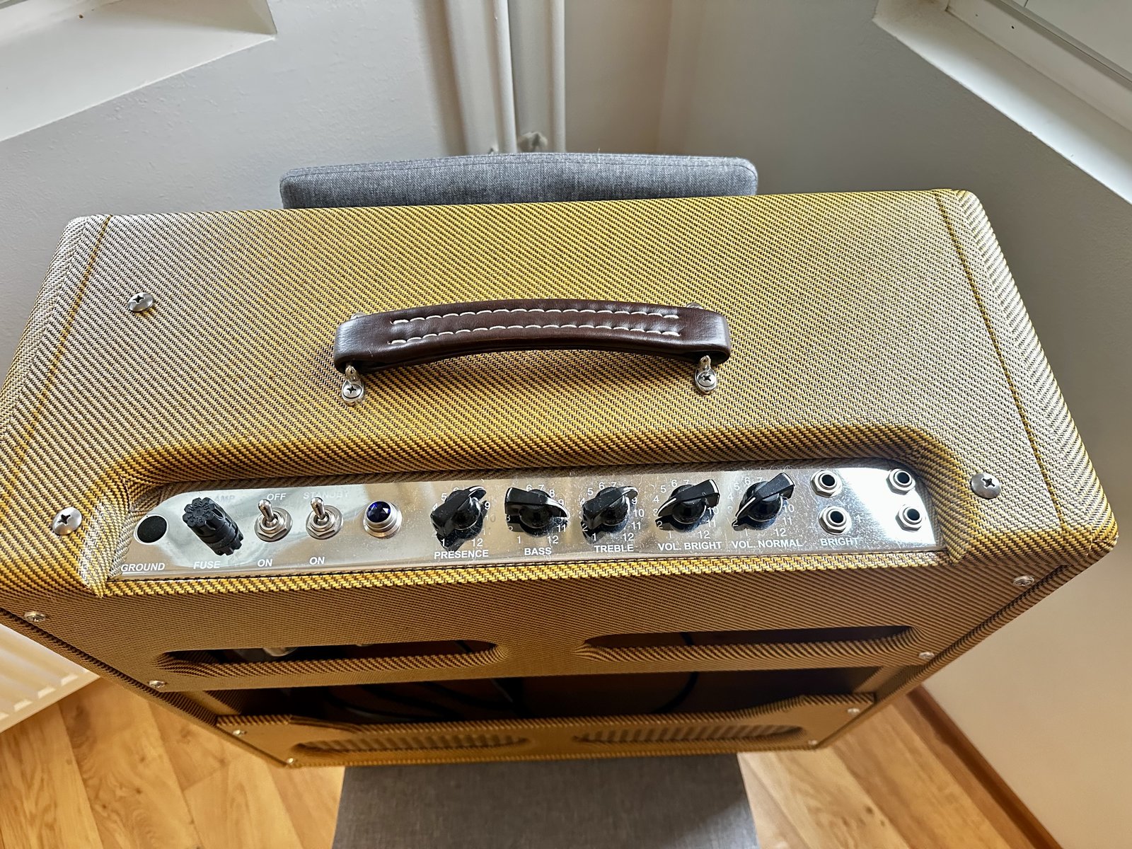 Myyn tai vaihdan Victorian upean 3x10 combon. Vaihdossa voi tarjota esim. Fender Custom Shop stratoa, Gibson ES-335, Suhr Standard Legacy, Suhr Modern, Tom Anderson.. --- 35310| The 35310 is a very versatile amp that delivers more pure tube distortion rather than speaker breakup, yet it also produces plenty of lush, clean headroom. A big favorite with our gigging customers, the Victoria 35310 shares the same tone control design of our other 28W amps, which adds a certain amount of perceived gain beyond the 1 o’clock position, almost like an overdrive pedal. Working with these controls enables you to raise and lower the threshold for clean tones in different sized rooms with precision. * 28 watts of power * 5E7 Type Circuit * Class A/B Adjustable Fixed Bias * Push/Pull Operation * Tubes: 1-5U4GB, 2-6L6GC, 2-12AX7, 1-12AY7 * 3x10: Jensen Special Design Speakers * Standard Covering-Tweed * Cabinet Size(HxWxD): 20.5” x 23.5” x 10.5” * Weight: 43 pounds Hinta: 1 € | |