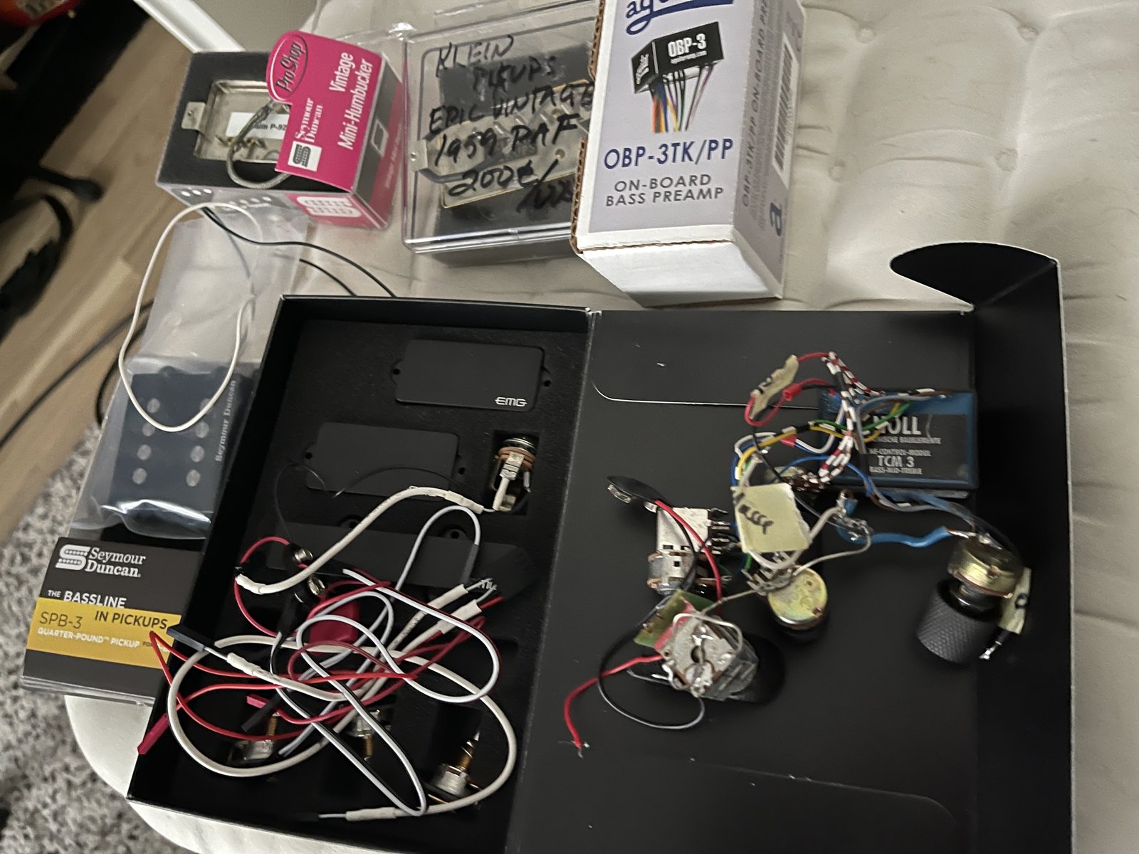 Some leftovers from various projects. 1. Seymour duncan sbp-3, installed once, like new - MYYTY 2. EMG PJ set with wires - 100 EUR 3. Aguilar OBP-3 TK, new - 180 EUR 4. NOLL TCM-3, 5 pots. This is some quality german stuff - 100 EUR Also some guitar stuff, cause i am lazy: 5. Fralin p92 neck - 120 EUR 6. Klein epic 59 paf - 100 EUR Posti + 8,90 EUR Hinta: 100 € | |