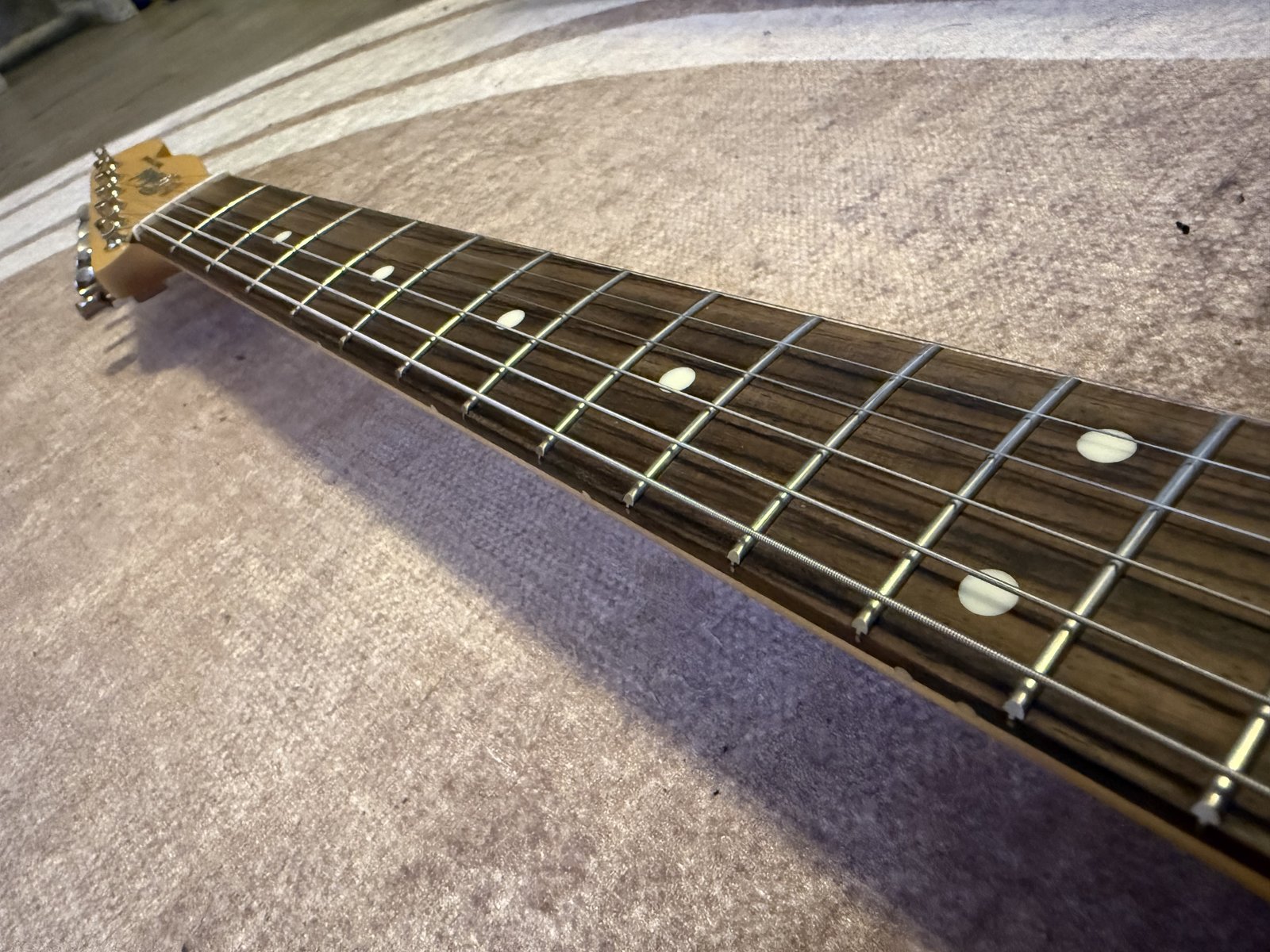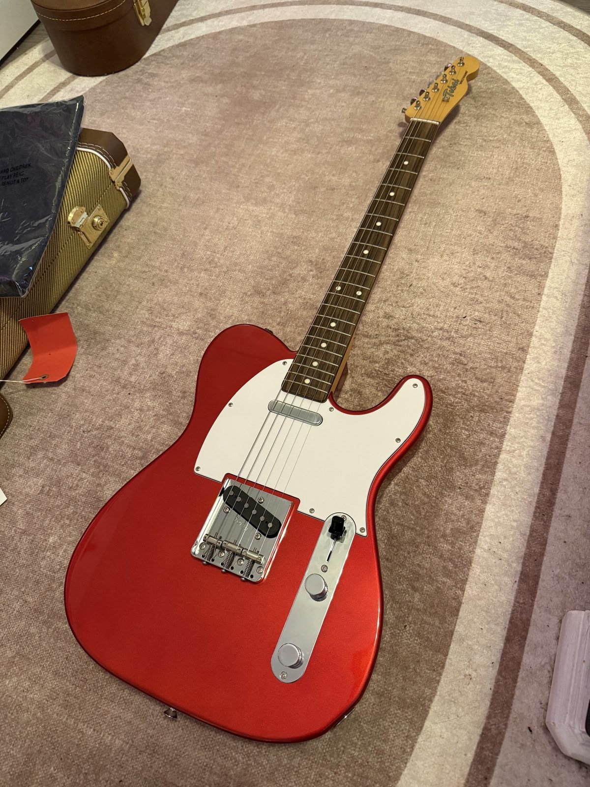 Lähes käyttämätön Tokain japanissa tehty tele. Ei mainittavia käytönjälkiä, ja täydessä iskussa muutenkin. Mukava hiukan tuhdimpi satiinilakattu kaula, ja ruusupuuotelauta 7,25” radiuksella. Väri candy apple red. Ei laukkua, laatikkoa tai pussia joten nouto Kouvolasta, testit onnistuvat myös. Pikaviesti alkuun. Hinta: 650 € | |