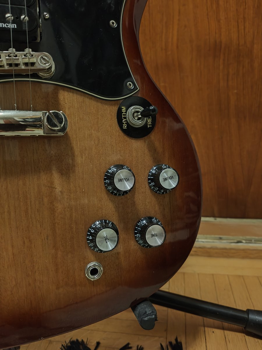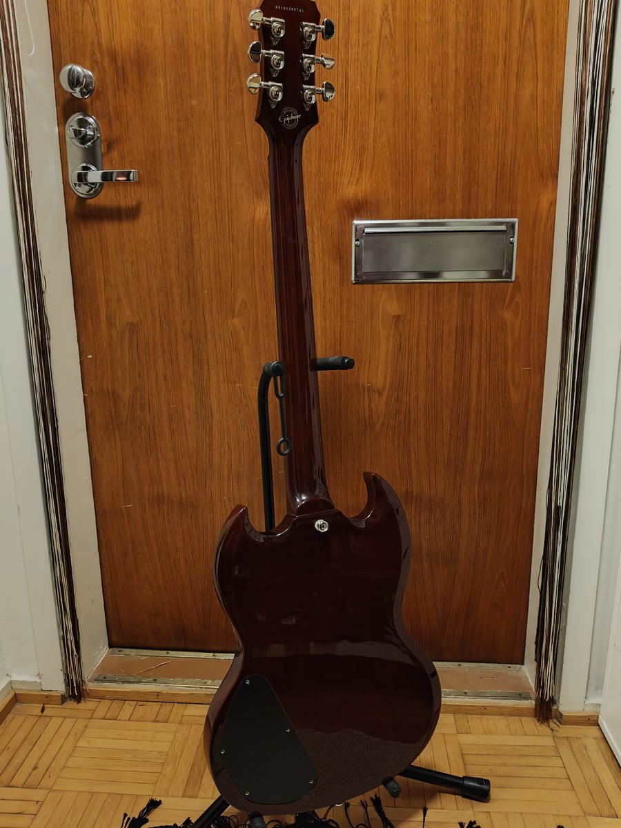 Myyntiin seuraavalle soittajalle! Hyväkuntoinen Epiphone SG vuodelta 2009. Tarkempi malli Limited Edition 1966 G-400 ehkäpä. Bodyssä vain muutama pieni dingi joista saa lisää kuvia halutessaan. Seymour Duncan mikit joiden mallia en tiedä. Koesoitto onnistuu ja nouto tapahtuu Mikkelistä Rokkalasta. On mahdollista kulkeutua Pieksämäelle sovitusti. Yhteydenotot pikaviestillä Hinta: 400 € | |