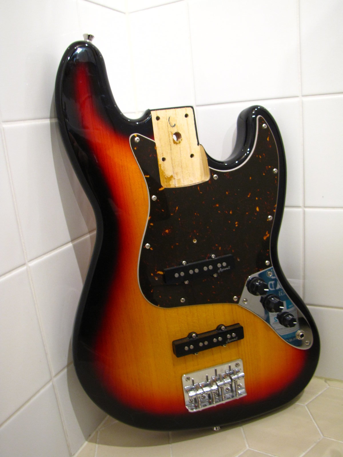 Kesken jääneiden projektien siivousta, aika ei riitä. Mint kuntoinen sunburst HB jazzarin body jossa Roswellin mikit, täydellinen elektroniikka ja vaihdettu Hoscon tumma tortoise -pleksi. Mukaan alkuperäinen pikimusta 1-kerros pleksi. Kaulataskuun (63,5mm) sopi timmisti ainakin Squier ja DR Parts -kaulat, mutta kannattaa mitata etukäteen. mmm 60¤ Nouto, Helsinki, Käteinen. Ei Mobilepay. Hinta: 60 € | |