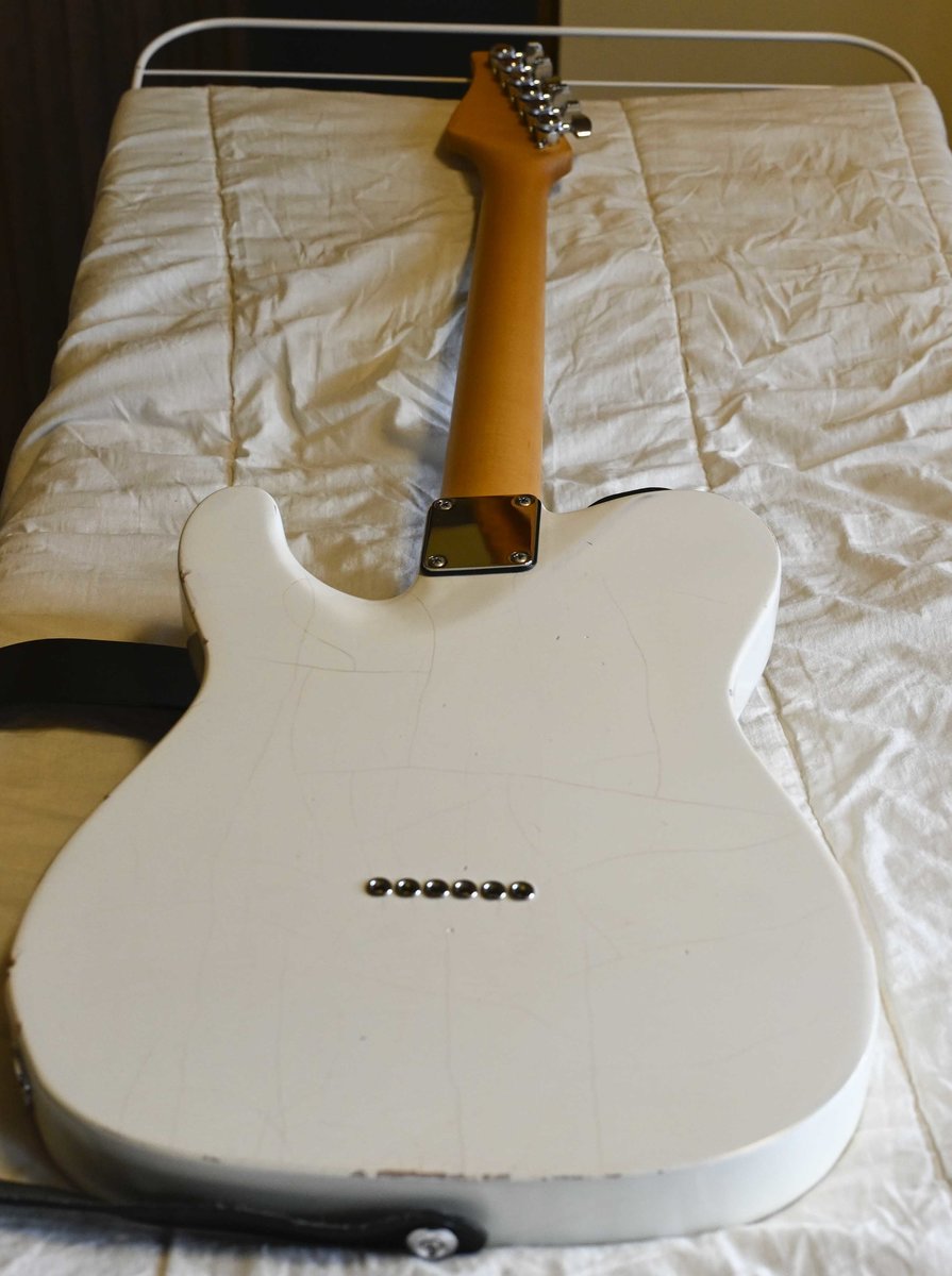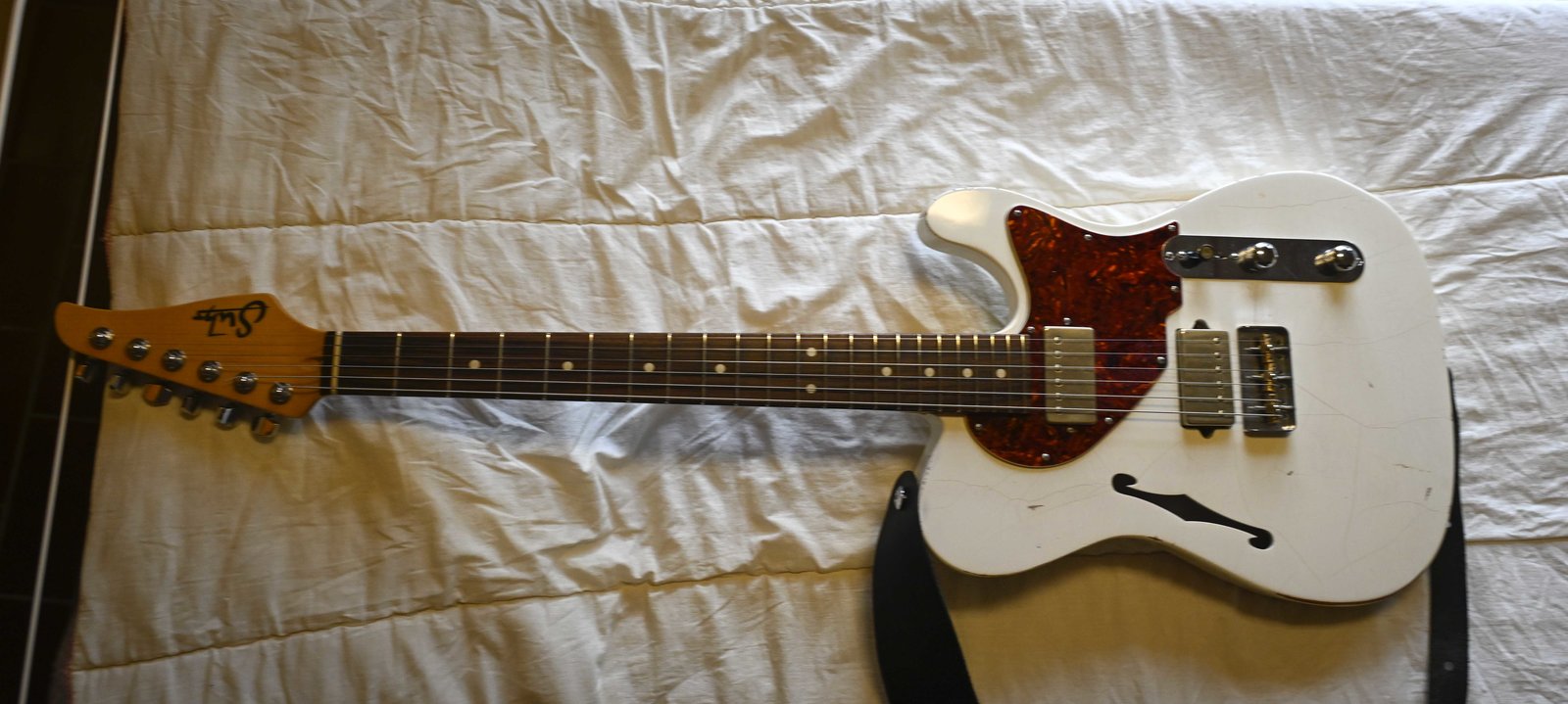 Thinline tele sieltä laatuasteikon yläpäästä. Soitettavuus priimaa, mikeissä twangia mutta tarvittaessa myös potkua. Nauhat kestää ydinsodan ja vire vielä nuijasodankin. Rungossa Vintage White Olympic -nitrolakka, krakeloitunut. Suhrin deluxe-laukku ja dokumentit. Saa tarjota vaihdokkeja (K-line, Nashguitars, Gibson ES-339 etc). Välirahoja mieluummin tänne päin. Myyntihinta 2500,- Vaihtohinta piirun korkeampi. Hinta: 2500 € | |