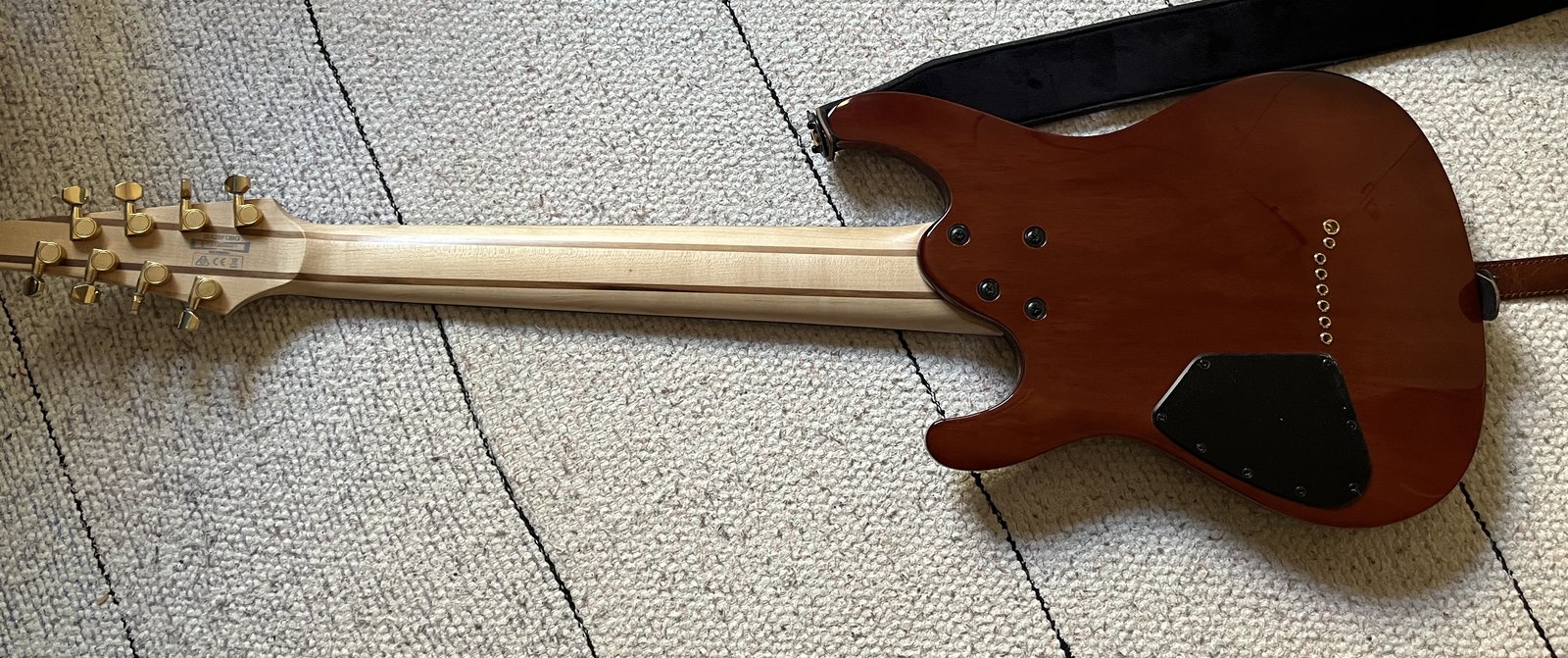 Myydään harvinainen Ibanez SIX28FDBG - 8-kielinen kitara. Erittäin näyttävän näköinen ja kaikin puolin hienosti soiva virheetön yksilö. En vaan opi soittamaan näillä kaseilla, vaikka jylheän murea soundi näissä onkin. Kaikki osat alkuperäiset ja myydään siinä kunnossa kuin on. Mukaan voin laittaa Ibanezin pehmeän kitarapussin. Speksit: https://ibanez.fandom.com/wiki/SIX28FDBG Body: Mahogany w/ bubinga top & abalone binding Neck: Nitro Wizard 8, Ebony fingerboard, 5-piece maple/ bubinga neck Pickups: Dimarzio D-Activator 8 Scale: 686mm/ 27" EI VAIHTOJA Nouto mieluiten. Postitustakin voidaan katsella, mutta se on kitaran pituuden vuoksi hieman hintavaa. Hinta: 800 € | |