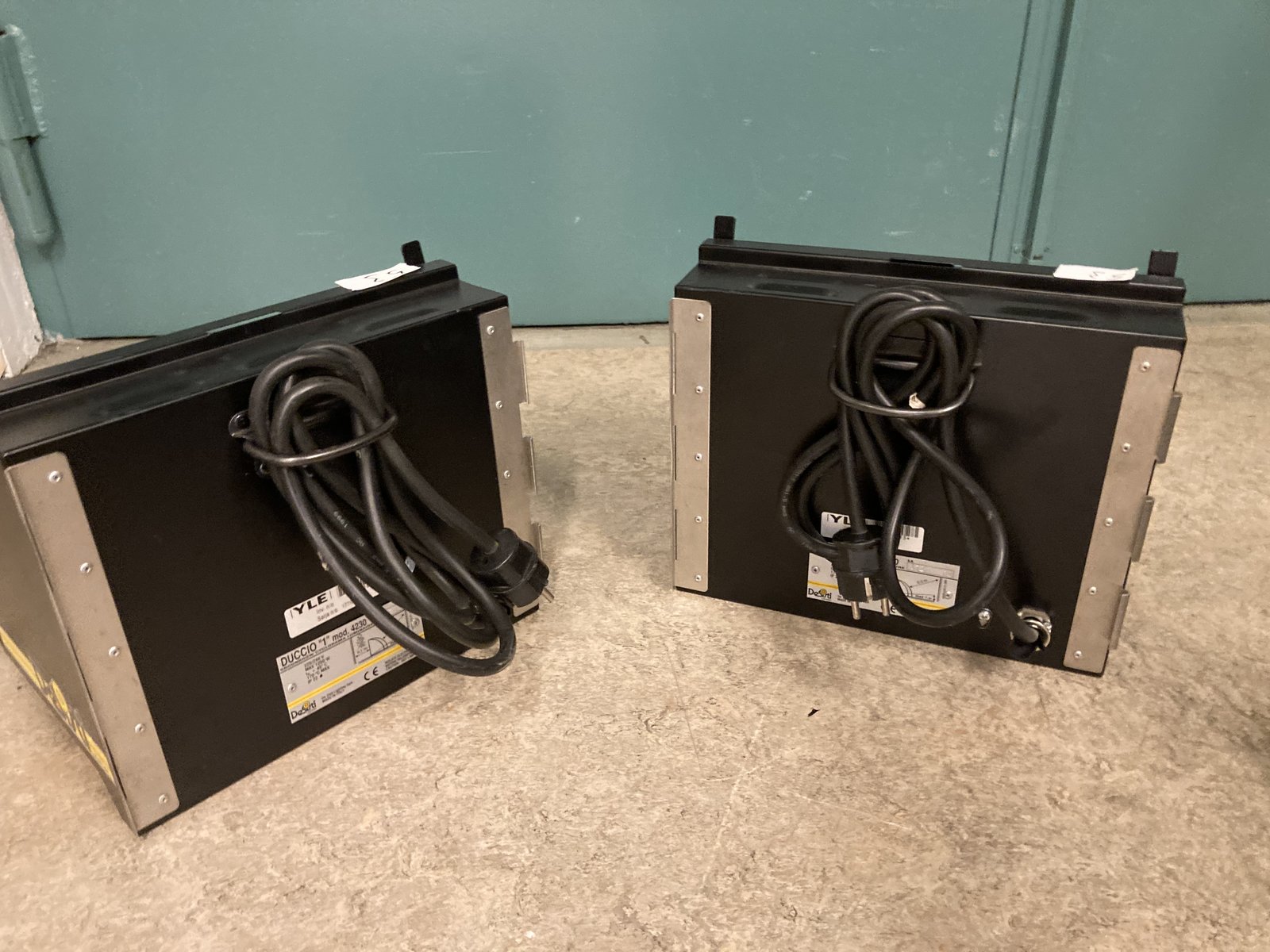 | Parinteisillä lineaarisilla hehkulampuilla (600-1000W) varustettuja yksittäisiä taustavaloja/eturamppeja, Ohjaus perinteiseen himmentimeen kytkemällä. Hyvä, tasainen valo jonka himmennyskäyrä on kiinni ohjaavasta himmentimestä. 14kpl DeSisti Duccio 1 (osassa mukana värikehys) 5kpl Strand Orion (osassa mukana värikehys) Kaikki toimivia mustarunkoisia. Suko pistokkeilla. Aikanaan hankittu yhteen yksittäiseen konserttiin koska vuokrattavana ei löytynyt suurta määrää yhtenevää kalustoa. Hinta: 380 € | |