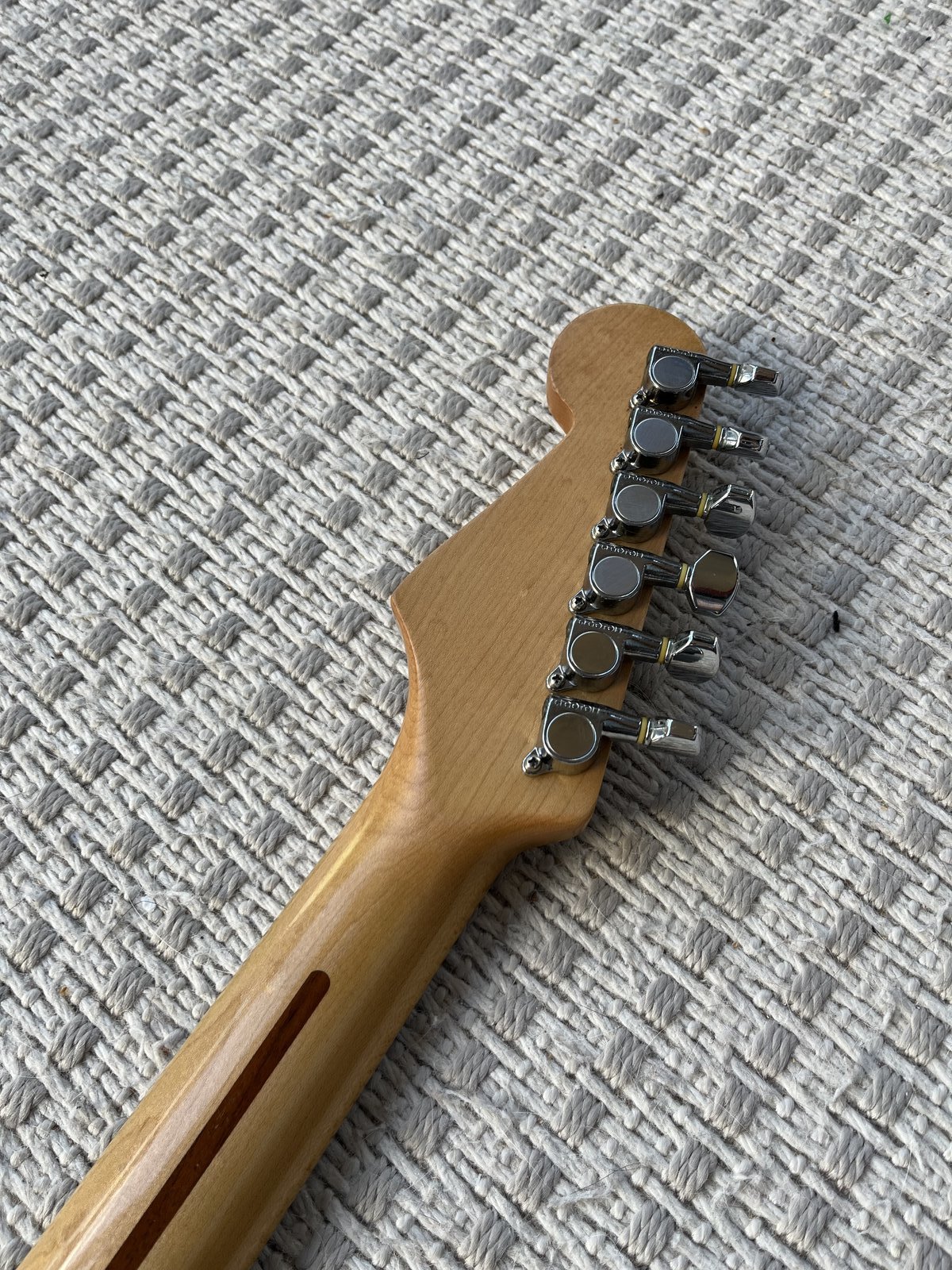 Otsikon ja kuvien todella hyväsointinen Strato, on puut kohillaan quarter sawn-kaula, body vintage-routtauksella, ei mitään uima-allas sellaisia, matalalla actionilla oleva helpposoittoinen peli, 10-46 Elixirin tuoreella setillä, potikat putsattuina/voideltuina. Tästä kohtapuoliin 40v täyttävä, se monen mielestä one and only musta kaunotar vaahteralaudalla. Laukkua ei valitettavasti ole, mutta ”epäkurantin pussukan” saa kotiinkuljetuksen avuksi. Noutohommaa ja maksu käteisellä. Hinta: 850 € | |
