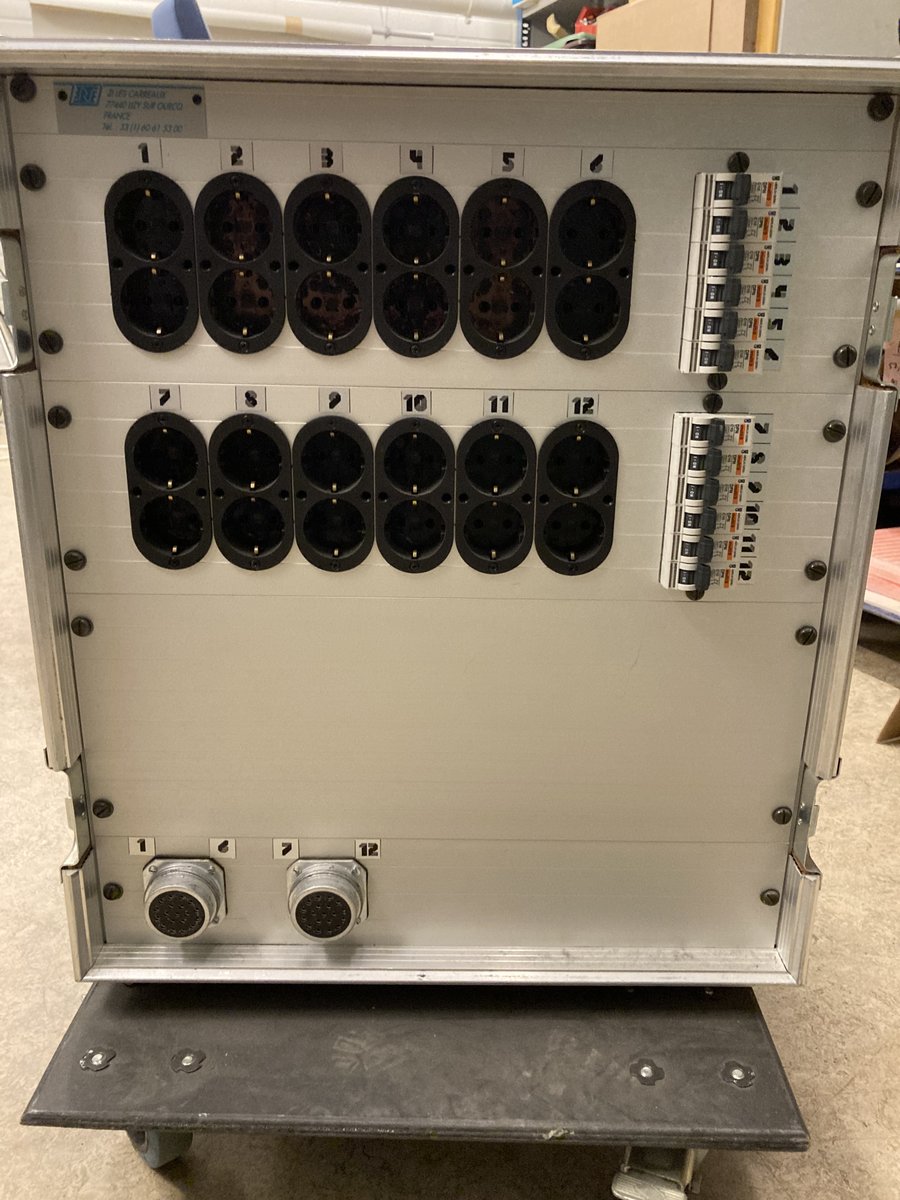 | RVEn 12 kanavainen DMX ohjattava modulaarinen himmennin 12x 2,5kW. Virtasyöttö 3~63A Lähdöt sukoina ja Socapexeinä. Lisäksi erillinen suorasähkö lähtö sukolla. Automaatti sulakkeilla. Ohjaukset 5-pin XLR sisään/läpi. Kannellinen kuljetuslaatikko irrallisella renkaallisella dollilla. Toimii ja siistissä kunnossa. Laitteeseen ei ole käyttöohjetta eli ostajalle jää vastuulleen laitteen logiikkaan tutustuminen itsenäisesti. Hinta: 200 € | |
