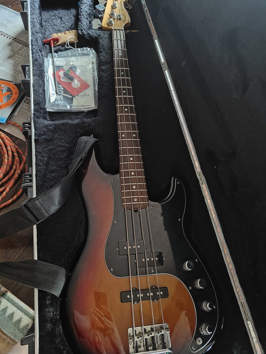 Paljon soitettu ja keikkailtu työjuhta seuraavalle. Hyvässä kunnossa kaikin puolin. Monipuolinen vehje genrestä riippumatta. Orkkis lippulaput yms mukana, sekä fenkun oma flight case.Kulkee pirkanmaalla jonnekkin joskus ja säkällä harvoin vantaalle. Testit onnistuu. Whats up tai pikaviesti alkuun. Puh nro näkyy kirjautuneille. Body Select Alder Body Finish Gloss Urethane Body Shape Precision Bass® Bridge 4-Saddle HiMass™ Vintage (String-Through-Body or Top-Load) Bridge Pickup Noiseless™ N3 Single-Coil Jazz Bass® Color 3-Color Sunburst Commodity Code [object Object] Configuration SS Control Knobs Knurled Flat-Top Controls Master Volume, Pan Pot (Pickup Selector), Treble Boost/Cut, Midrange Boost/Cut, Bass Boost/Cut, Passive Tone, Active/Passive Mini Toggle Country Of Origin US Dimensions 6.00x17.50x52.00 IN Fingerboard Rosewood Fingerboard Radius 9.5" (241 mm) Fret Size Medium Jumbo Hardware Finish Chrome Middle Pickup Deluxe Split Single-Coil Precision Bass Model Name American Deluxe Precision Bass®, Rosewood Fingerboard, 3-Color Sunburst, 3-Ply B/W/B Pickguard Neck Finish Satin Urethane Finish on Back of Neck with Gloss Urethane Headstock Face Neck Material Maple Neck Shape Modern "C" Number of Frets 21 Nut Material Bone Nut Width 1.625" (41.3 mm) Orientation Right-Hand Pickguard 3-Ply Black Pickup Configuration SS Pickup Switching Pan Pot Position Inlays White Pearloid Dot Refinement Neck Material Maple Refinement Neck Shape C Shape Refinement Pickups Modern Scale Length 34" (86.36 cm) Series American Deluxe Special Electronics Active/Passive Mini-Toggle Switch String Nut Bone Strings Fender® 7250M Nickel Plated Steel Roundwound, Long Scale, (.045-.105 Gauges), PN 0737250406 Truss Rod Wrench 3/16" Hex (Allen) Truss Rods Posiflex™ Graphite Neck Support Rods Tuning Machines Fender® Lightweight Vintage-Style Keys with Tapered Shafts Hinta: 1500 € | |