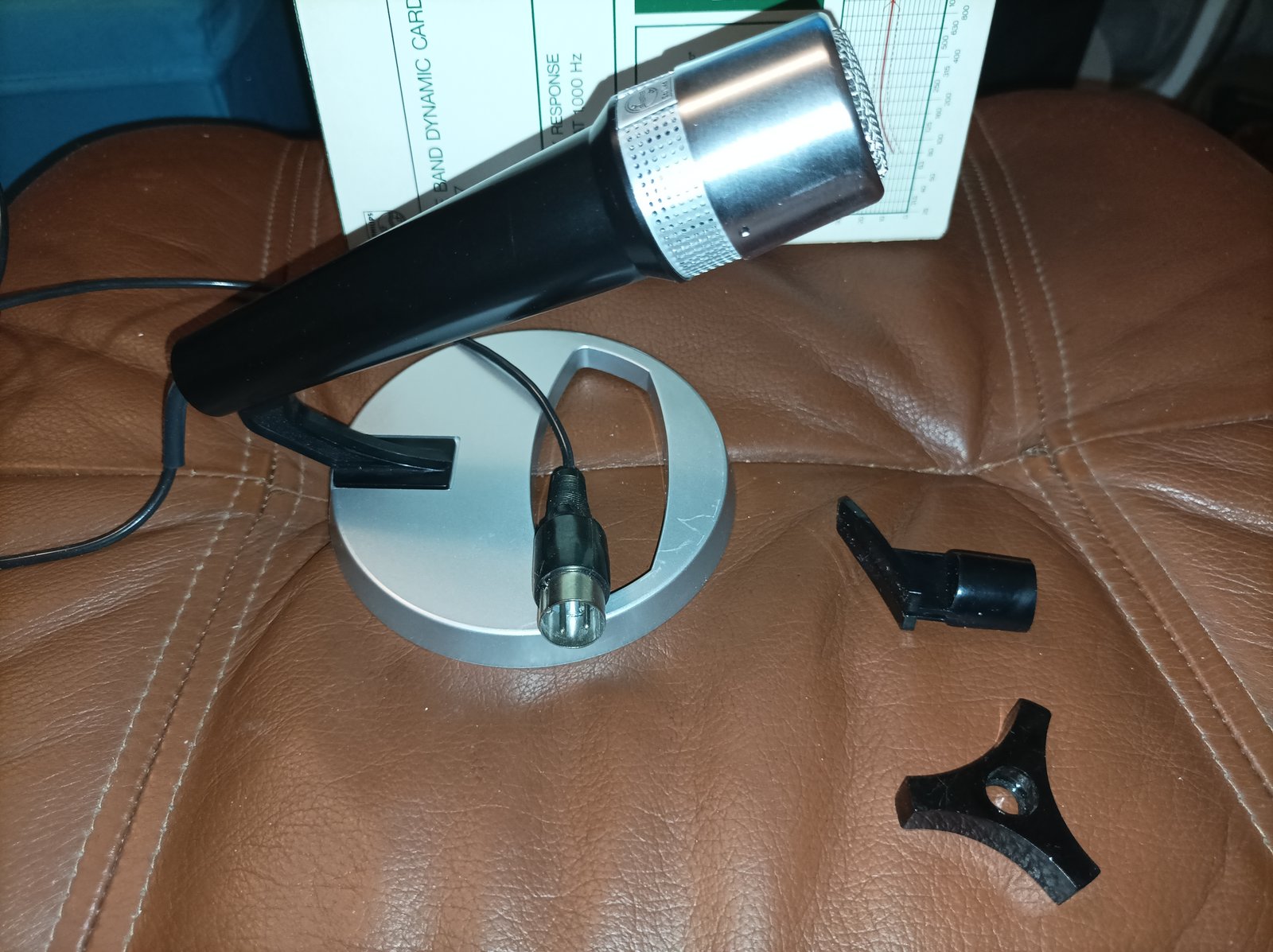 Philips N 8307 dynaaminen mikrofoni joka sopii pöytäjalustaan tai telineeseen. Toinen mikrofoni on merkkiä tuntematon. Nämä on ollut laatikossaan kymmeniä vuosia. En pysty testata kun ei ole laitteita din liittimelle. Oletan että nämä toimii koska ovat aivan käyttämättömän/ uuden näköisiä, ei mitään kulumaa eikä jälkiä. Ilmeisesti nämä ovat 70- luvulta. Myyn pakettina molemmat yht 25¤ Lähetys onnistuu tarvittaessa. Hinta: 25 € | |