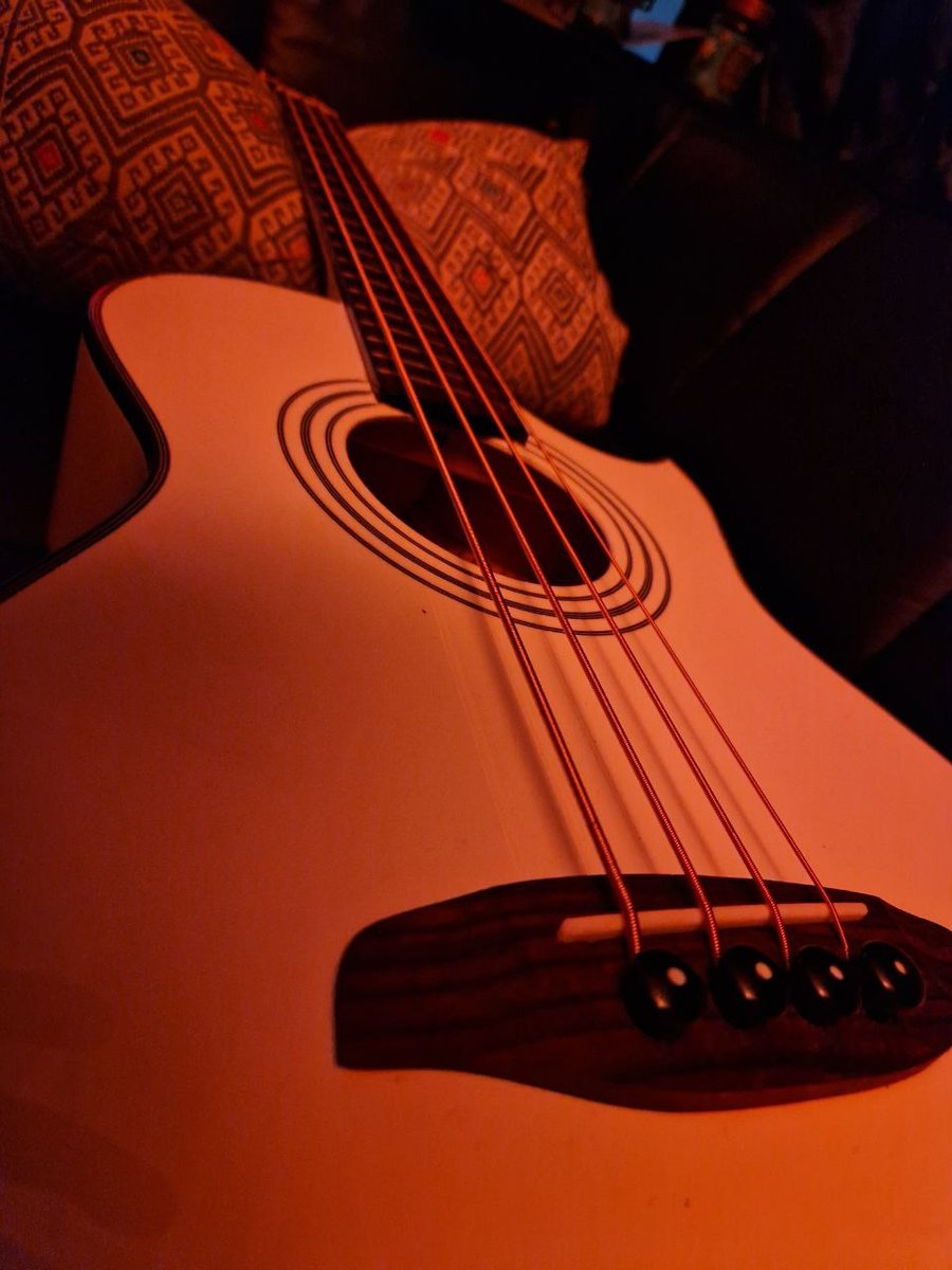 Ostakaa nyt herra varjele tämä niin allekirjoittanut saa rumpukamoja!) Pienikokoinen erityinen akustinen nelikielinen basso; Ehjä, keikkailtu, soitettu, huollettu, pysyy vireessä ja elektroniikka toimii. Kaikukopassa pieni dentti (näkyy kuvassa), ei vaikuta sointiin tai noin muuten häiritse menoa, huomioitu hinnassa. Keissiä / pussukkaa ei ole mutta tarvittaessa pienestä lisähinnasta keksin jonkin sopivan. Pikaviestit menee herkästi ohi. Hinta: 275 € | |