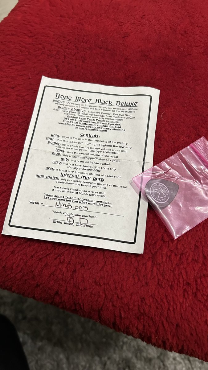 Tämmöset matolaatikot olis vailla uutta omistajaa. Myynti / Vaihto Menatone None More Black DLX; Hyvinkin germaanisella soundilla varustettu jenkkivalmisteinen särö. Soundillisesti menee hyvin läheltä Diezel/ENGL osastoa. Tällä ei bluesia soitella, mutta kasarista nykypäivän mättöihin löytyy jos jonkinlaista soundia. Hinta 90¤ Boss Metal Core ML-2; Pedaalin nimi kertookin mihin tarkoitettu. Saa tästä vähän miedompaakin ulos tarvittaessa. Hinta 60¤ Molemmat toimii perus 9V virtalähteellä ja patterilla. Vaihdossa voi tarjota pöristimiä bassolle. Vaihdot Lappeenrannassa. Lähettäminen onnistuu alkuperäisissä pakkauksissa ostajan kustannuksella. Pikaviestillä tavoittaa. -S Hinta: 1234 € | |