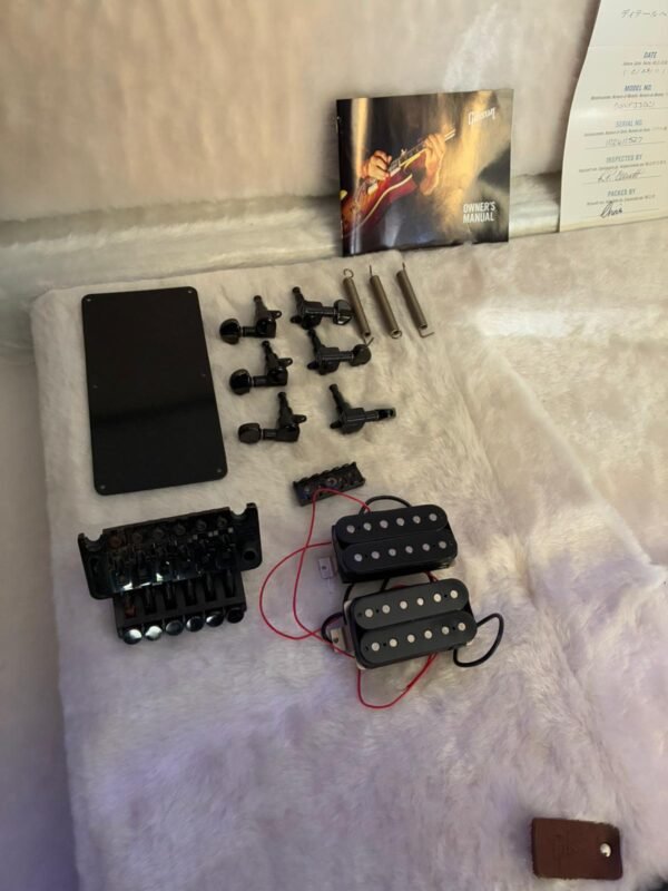 Tarjolla omatlaatuinen explorer Zakk Wylden nimmarilla, hyvässä kunnossa (jotain pientä ikääntymistä toki löytyy) . Viritys on säädetty huolellisesti liikkeessä, eikä elektroniikassa ole mitään vikaa. Kitaraan on lisätty kill switch ja siihen on vaihdettu EMG-mikit + grover locking tuners . Alkuperäinen Floyd Rose ja satula poistettu. Kaikki alkuperäiset osat tulevat mukaan. Myös alkuperäinen kovakotelo sekä aitoustodistus. Vaihdossa käy Les Paulit Voin myös myydä, tarjoa rohkeasti. Viestit: 045 3402621 | |
