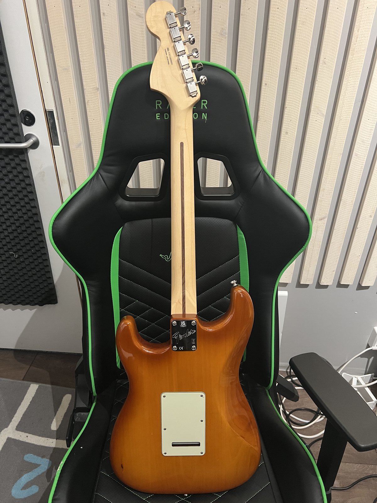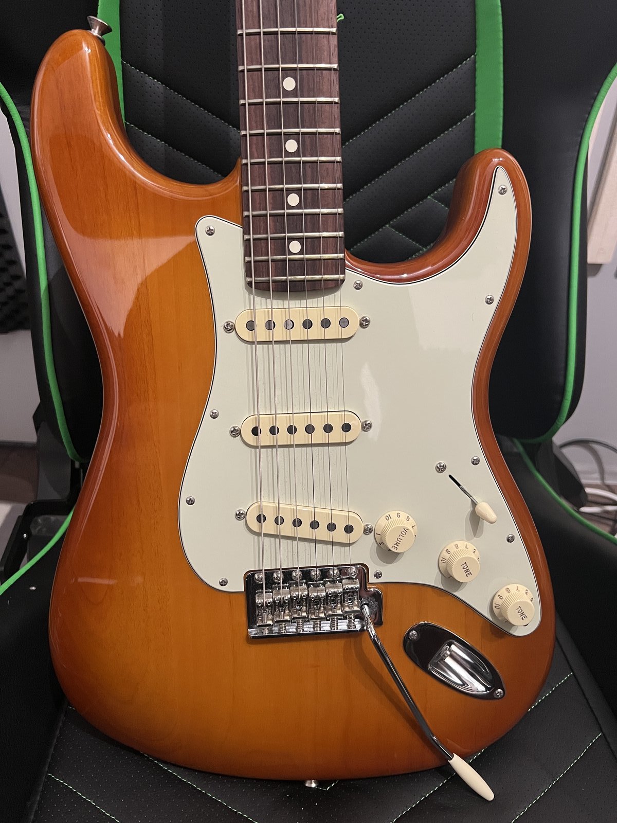 Vähälle studiokäytölle jäänyt Made in USA Strato, joka on käytännössä kuin uusi. Uudet Ernie Ball 10-setin kielet vaihdettu ja intonaatio, mikit sekä vibrakampi+jouset säädetty ammattilaisen toimesta, jonka ansiosta soittotuntuma ja vireisyys on huippuluokkaa. Soittovalmis kitara vaativammallekin soittajalle. Mukaan tulee alkuperäinen Fenderin pehmeä kantolaukku, sekä kaularaudan säätötyökalu ja vibrakampi. Ei kolhuja eikä naarmuja, eikä muutakaan huomautettavaa. Kaikki toimii niinkuin pitääkin. Ostettu uutena 18.7.2023 Tammer Pianosta. Vastaava kitara kuin linkissä, jossa myös tarkemmat tiedot: https://www.verkkokauppa.com/fi/pro … PqCanPidn5n6da5nudWLRZcw5LtDwnPq8Or Hinta: 1150 € | |