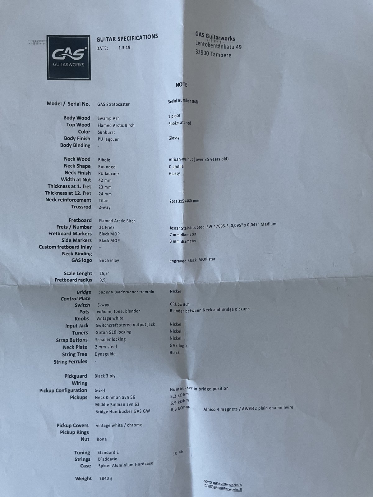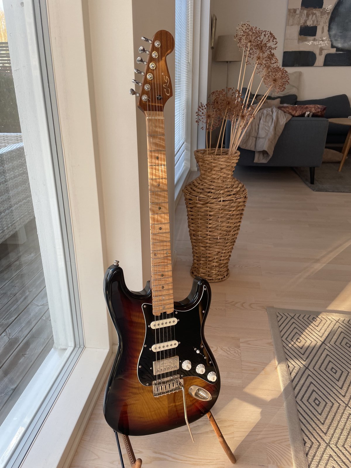 Gas stratocaster erinomaisilla spekseillä. Ja todella kaunis soundi! Tarkemmat speksit kuvissa, tästä löytyy aivan kaikki. Täysin uutta vastaava. Mukaan kova laukku. Nouto ja testit onnistuu Järvenpäässä tai Helsingissä. Hinta: 2350 € | |