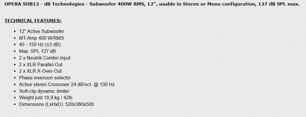 | Myydään: Aktiivi-PA dB Technologies Opera Sub 12 ja 2 x Basic 100 | |