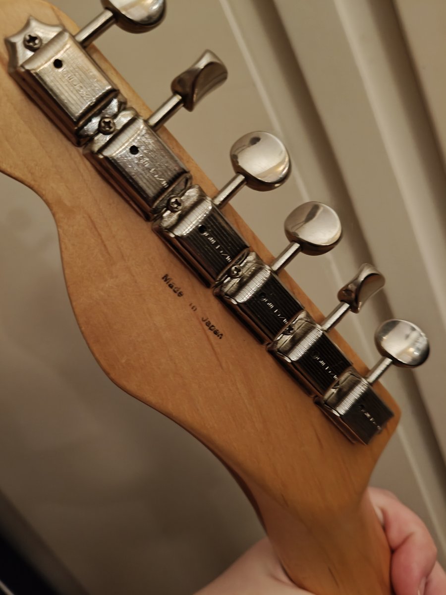 Tästä harvinaisempi ja soittotuntumaltaan arvostettu Japani ESP. Ymmärtääkseni 80-luvun loppupuolelta ja halutusti vielä näitä "pre lawsuit" yksilöitä. Yksilöön on aikanaan lisätty kolmas mikin paikka, joka jää nätisti plektrasuojan alle. Muutostyöstä on kuitenkin jäänyt bodyn etupuolelle ruuvin jättämä jälki. Nauhat ovat jokseenkin kuluneet ja kitara on nähnyt paljon aktiivista käyttöä. Muuten kitara on hyvässä kunnossa. Ulkoasu on muuten tyylikäs ja elektroniikka toimii moitteetta. Testaus vahvarin kanssa onnistuu Joensuussa. Pehmeä laukku mukaan, jonka vuoksi en postittaisi kitaraa. Senverran voidaan tulla vastaan, että sovittuna kulkeutuu Lappeenrantaan tai Kuopioon. Vaihto onnistuu myös saman hintaluokan tai halvempaan hevi-henkiseen kitaraan (ei kelluvaa tallaa). Bassot, pedaalit ja vahvarit harkitaan myös. Mutta ehdota niin katsotaan yksilö kohtaisesti. Hinta: 1000 € | |