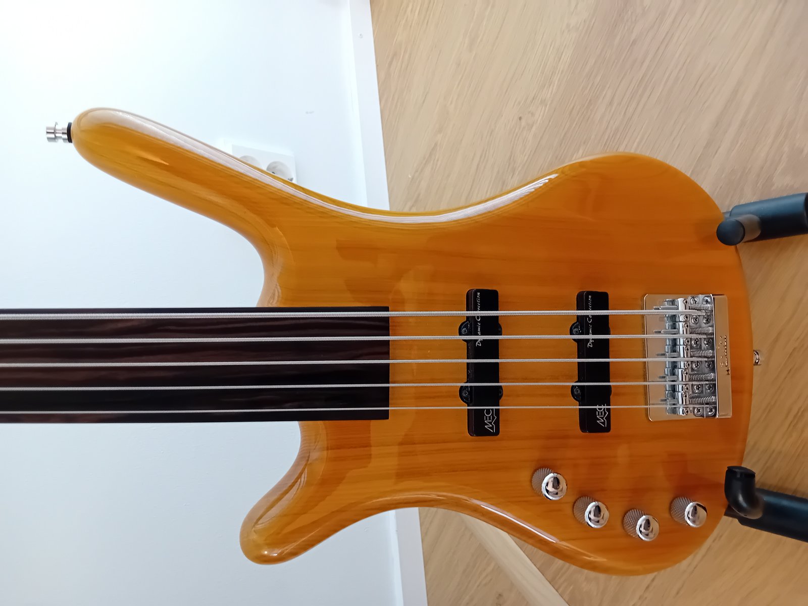 | Myynnissä hyväkuntoinen 2006-vuoden nauhaton viisikielinen vasuri. Passiivielektroniikka volume/blend/tone/tone. Otelaudassa hiukan kielten jälkiä, headstockissa pieni naarmu. roundwound kielet kiinni. Myydään käytön puutteen vuoksi. Ei postitusta, vain nouto ja testaus Helsingin Maunulassa. Yhteydenotot Whatsapilla. Hinta: 350 € | |