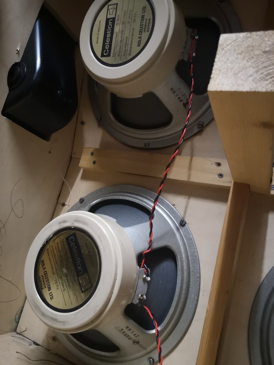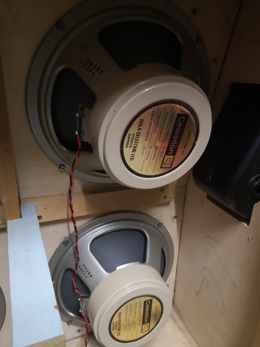 Marshall kaappi vuodelta 1976. -Sisällä vuoden 1975 Celestion Creamback G12H kaiuttimet alkuperäisillä kartioilla. -Kaappi on ulkoisesti kulahtanut, mutta soundi on hyvä ja kaikki toimii. Pyörät alla. -Kokonaisimpedanssi 8 ohm, tehonkesto 120W Vaihdossa kiinnostaa: -telecaster -bändikäyttöön sopiva putki combo -Laatu pedaalit ja virtalähteet Kaapin vaihtoarvo noin tonni, mutta käteisellä voin myydä 800¤. | |