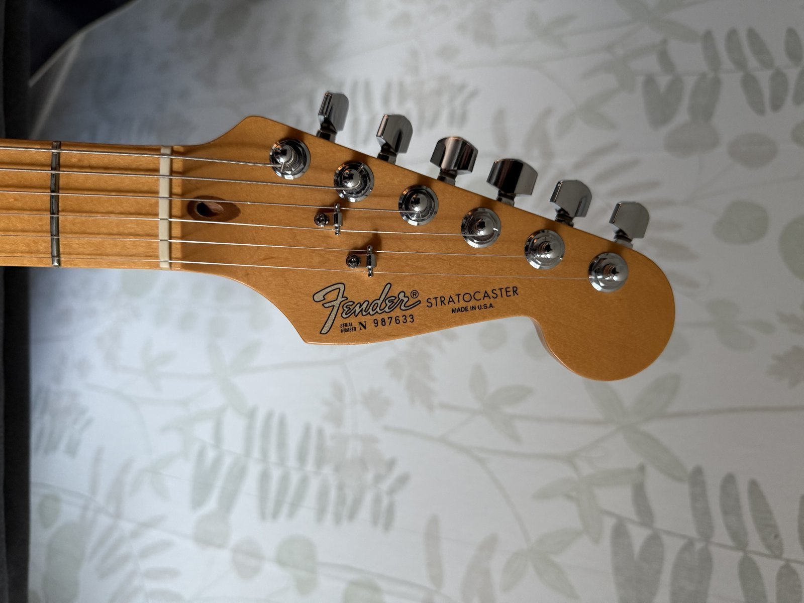 Todella siisti alkuperäinen American Standard. Leppärunko, vaahterakaula ilman erillistä otelautaa, 22 hyväkuntoista nauhaa. TBX-tonekontrolli. Kova kotelo mukaan. Ei vaihtoja. Hinta: 1650 € | |