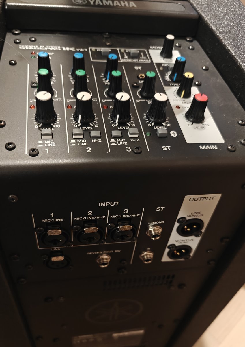 Myydään uudenveroinen Yamaha Stagepas 1K MK2. Käytetty vain muutaman kerran kotona sisätiloissa. Ei naarmuja, ei kulumaa, täysin virheetön ja toimii moitteettomasti. - 1100 W D-luokan vahvistin (600 W + 500 W) ja 12" subwoofer takaavat voimakkaan, selkeän ja täyteläisen äänen. - 10-elementtinen linjakaiutin (1,5”) tarjoaa laajan 170° vaakasäteen ja tasaisen peiton koko tilaan. - Digitaalinen mikseri: 3 mono-/linjatuloa + 1 stereotulo, EQ ja SPX-efektit suoraan käytettävissä. - Kompakti all-in-one-järjestelmä, sisältää suojakannen ja on helppo kuljettaa ja pystyttää. Erinomainen äänenlaatu pieniin ja keskikokoisiin tapahtumiin Hinta: 780 € | |
