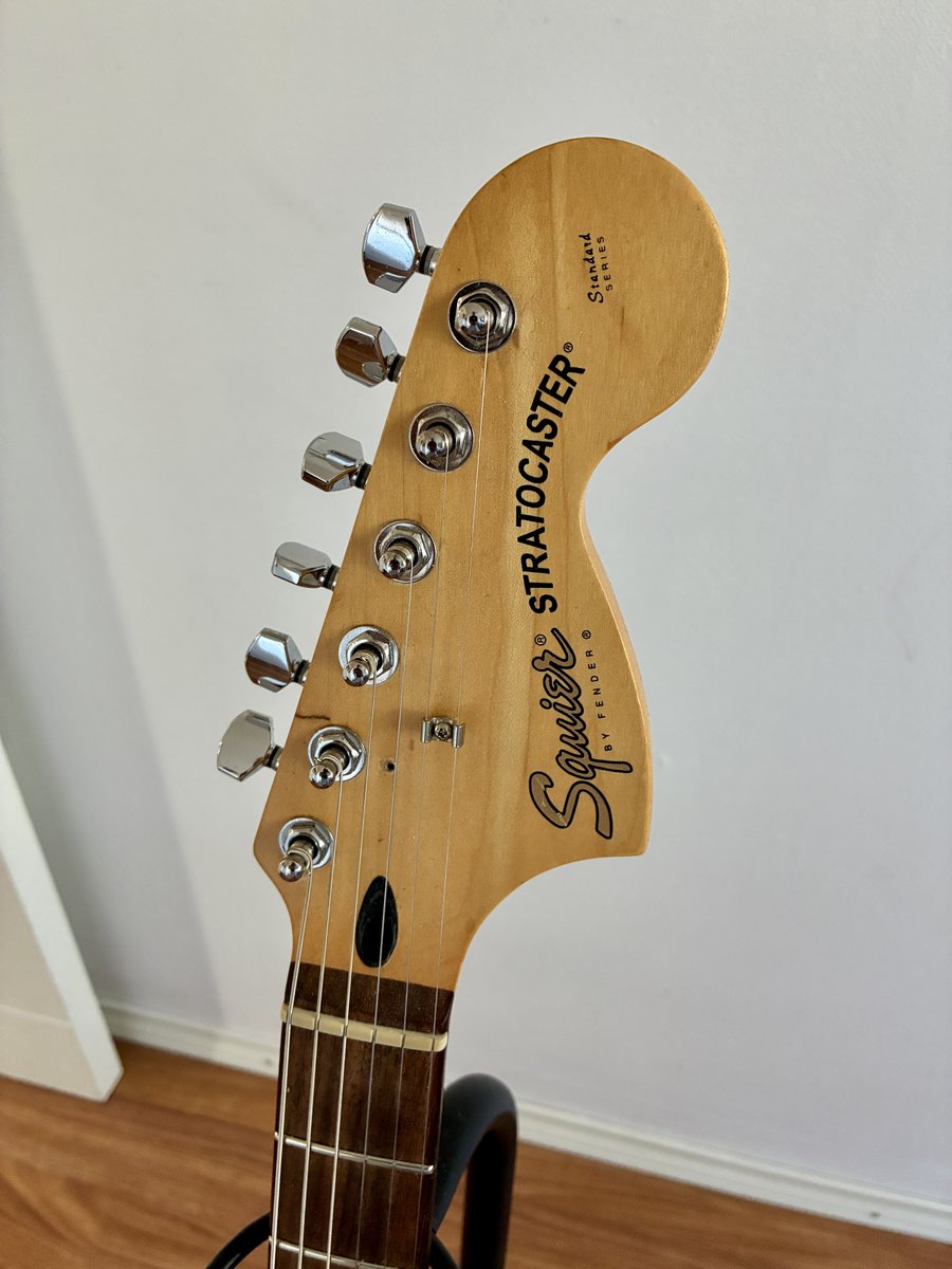 Myynissä upea Squier 20-vuotis juhlamalli vuodelta 2002. Pieteetillä ammattilaisen relikoima. Virittimet vaihdettu, nauhat plaanattu, hyvissä säädöissä, uudet 09-setin kielet. Kitara kuin legendaarinen Roadrunner Strato, livenä vielä upeampi. Espoossa kokeilumahdollisuus soittokämpällä Hinta: 390 € | |