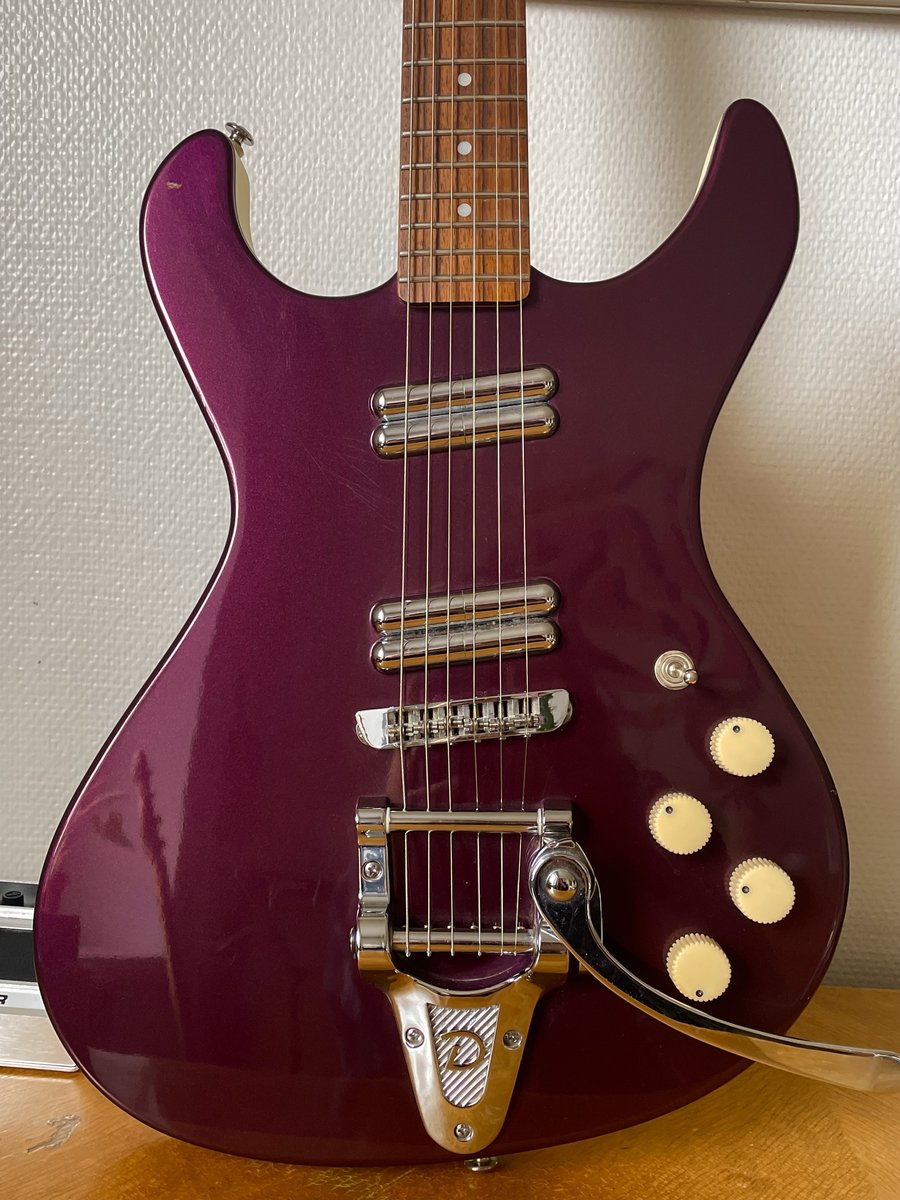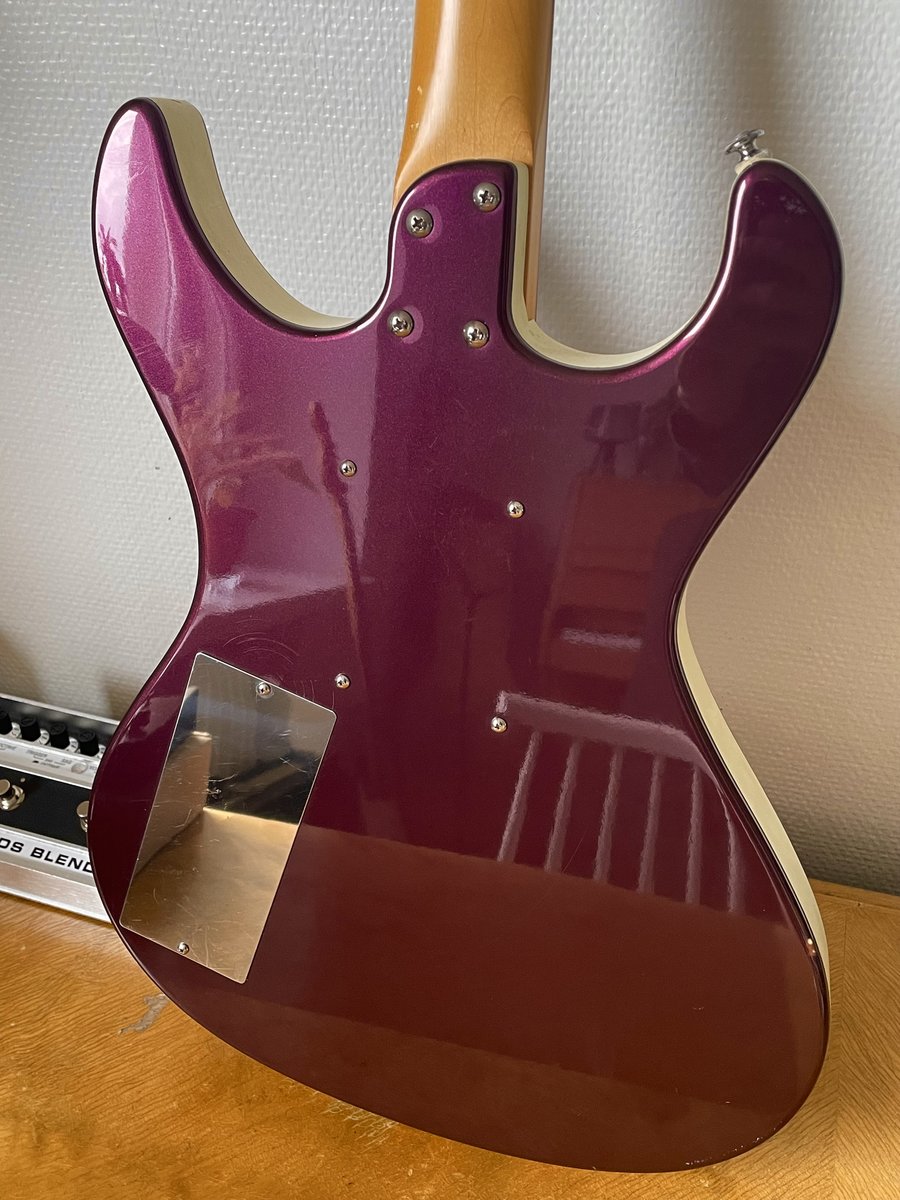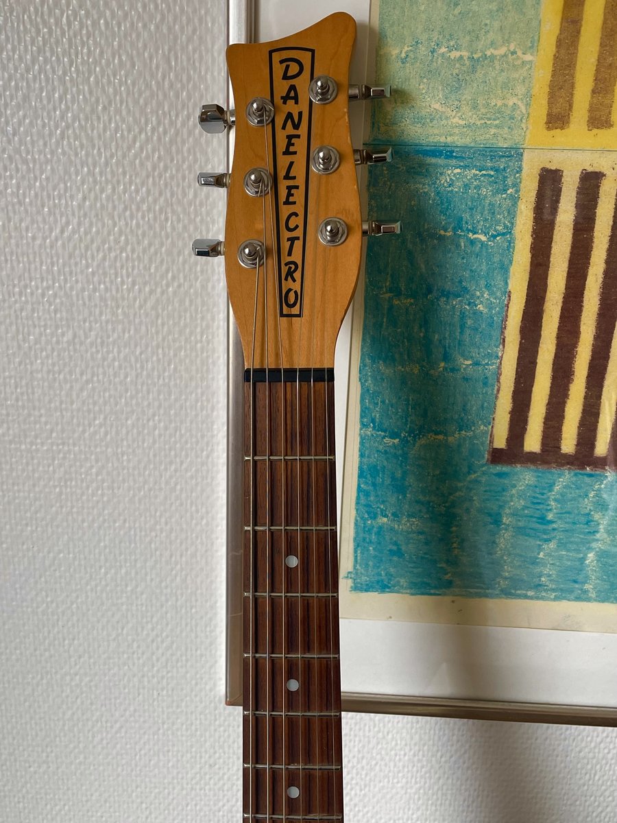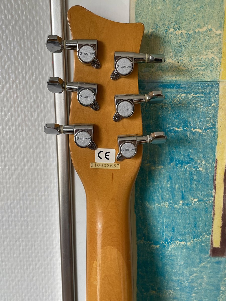 Danelectron Mosrite-tyyppinen megahieno ja vänkä skeba myyntiin. Valmistettu Koreassa vuosituhannen alussa. Olen toinen omistaja. Tässä piisaa soundivariaatiota: 3-asentoinen switchi, toisessa tone-potikassa vaiheen kääntö ja toisessa mikkien puolitus. Tästä lähtee siis perinteisen Dano-twängin ja janglen lisäksi vaikka ja mitä. Ohut ja vikkelä kaula. Gotohin virittimet. Hienosti vireen pitävä rullatalla ja Bigsby-tyyppinen vibrasysteemi. Vibralla saa tosi makeasti "sointudippejä" ja eloa soittoon! Hyvässä kunnossa, muutamia pieniä dingejä ja naarmuja siellä täällä. Nauhat priimakunnossa. Kaularaudalle säätö kaulan tyvessä, joka myös toimii kuten pitääkin. Mukana tulee Danelectron laadukas tweed-gigbag. Tarjoa! Testaus onnistuu Hakaniemessä tai Vallilassa, lähetys ok kuluja vastaan. Tekstarilla saa parhaiten kiinni 0400197370. Hinta: 650 € | |