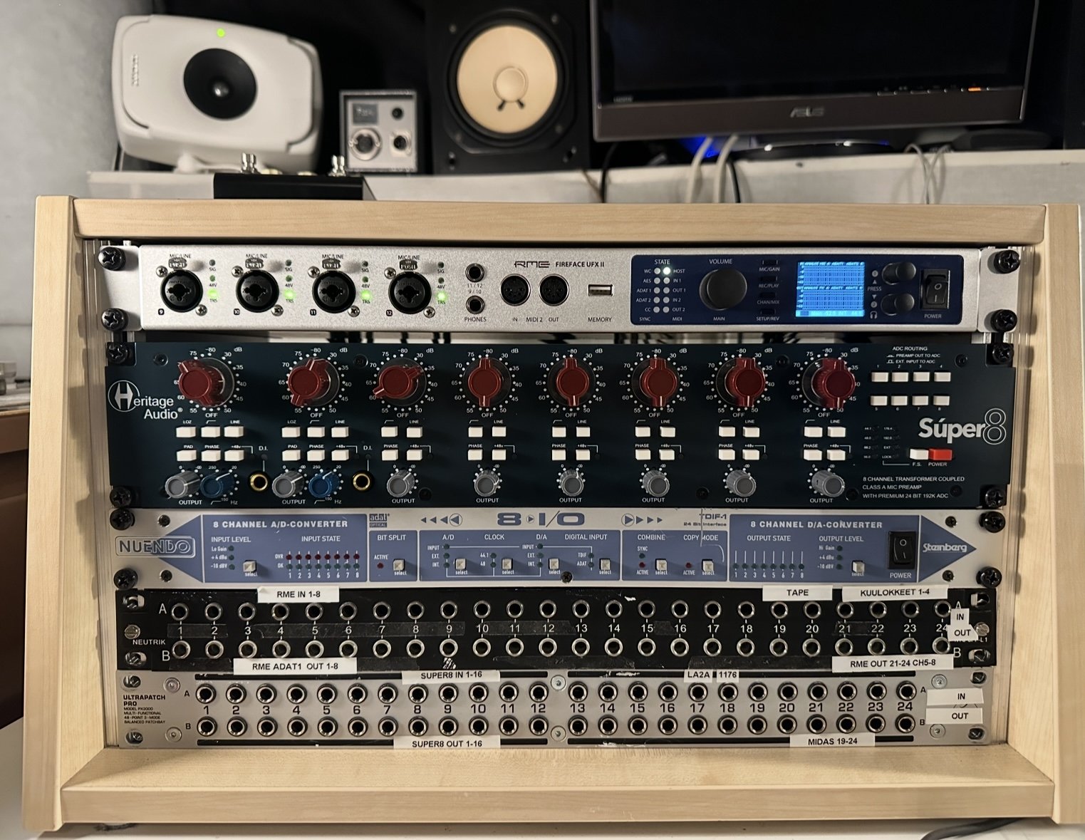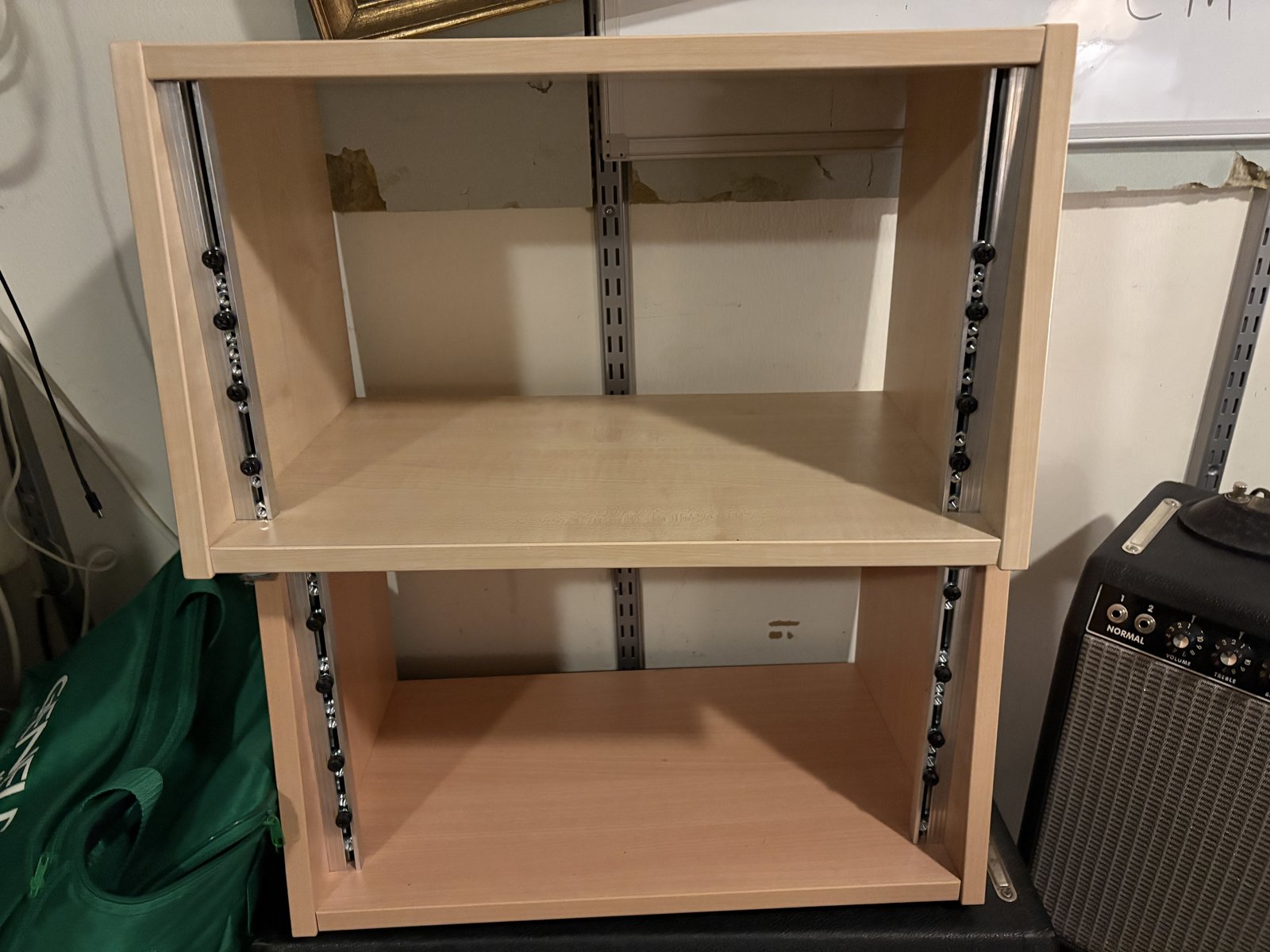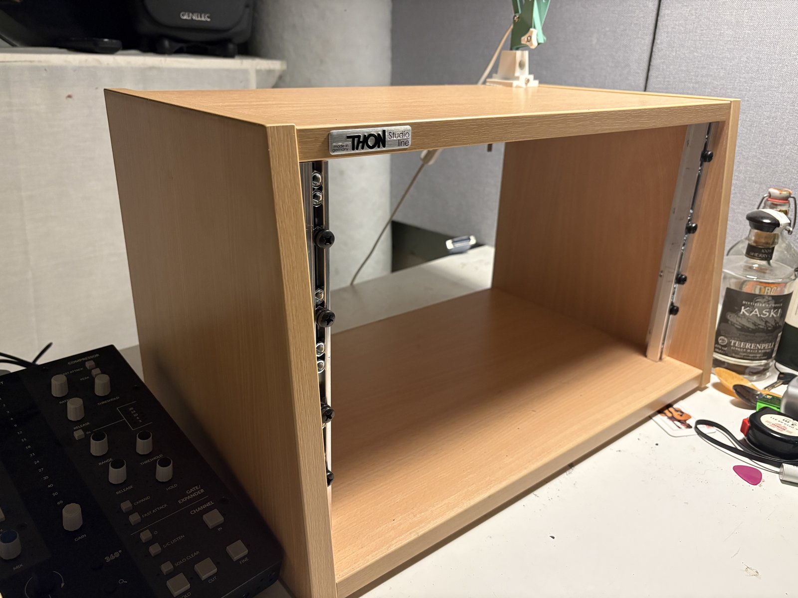 | 2kpl Thon Studio desktop rack 6U pöytäräkkiä joilla saat normaalista pöydästä tehtyä studiopöydän. Toinen on hieman vanhempaa mallia joten värisävy on hieman eri. https://www.thomann.de/fi/thon_studio_desktop_rack_6u_beech.htm Hinta: 180 € | |