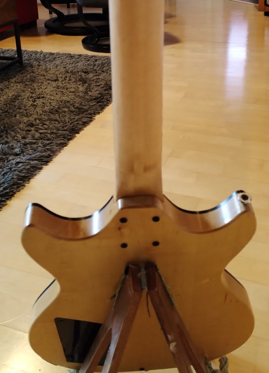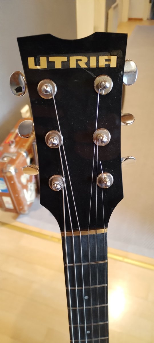 Utria-sähkökitara. Oululaisen kitaranrakentajan jäämistöstä kunnostettu käyttämätön kitara, sarjanro 15. Kaula säädetty, nauhat viilattu/kiillotettu ja ebenpuinen otelauta öljytty. Runko todennäköisesti koivua, kaulassa säätörauta. Erittäin kevytsoittoinen. Soundi stratomainen, mikit yksikelaisia ja matalaimpedanssisia, (n.2,9 KΩ), rakentaja Utria-Valkaman itse tekemiä, kuten lähes kaikki kitaran osat. https://fi.wikipedia.org/wiki/Utria_Valkama Hinta: 420 € | |