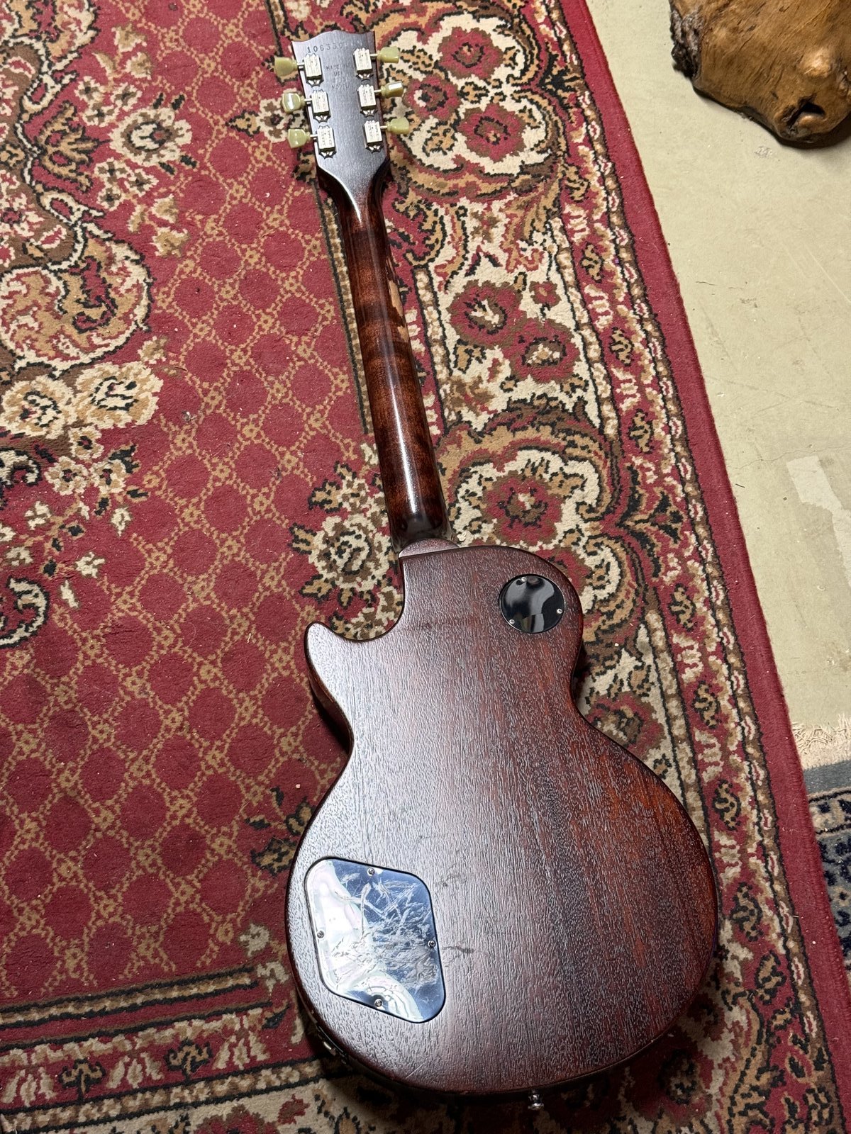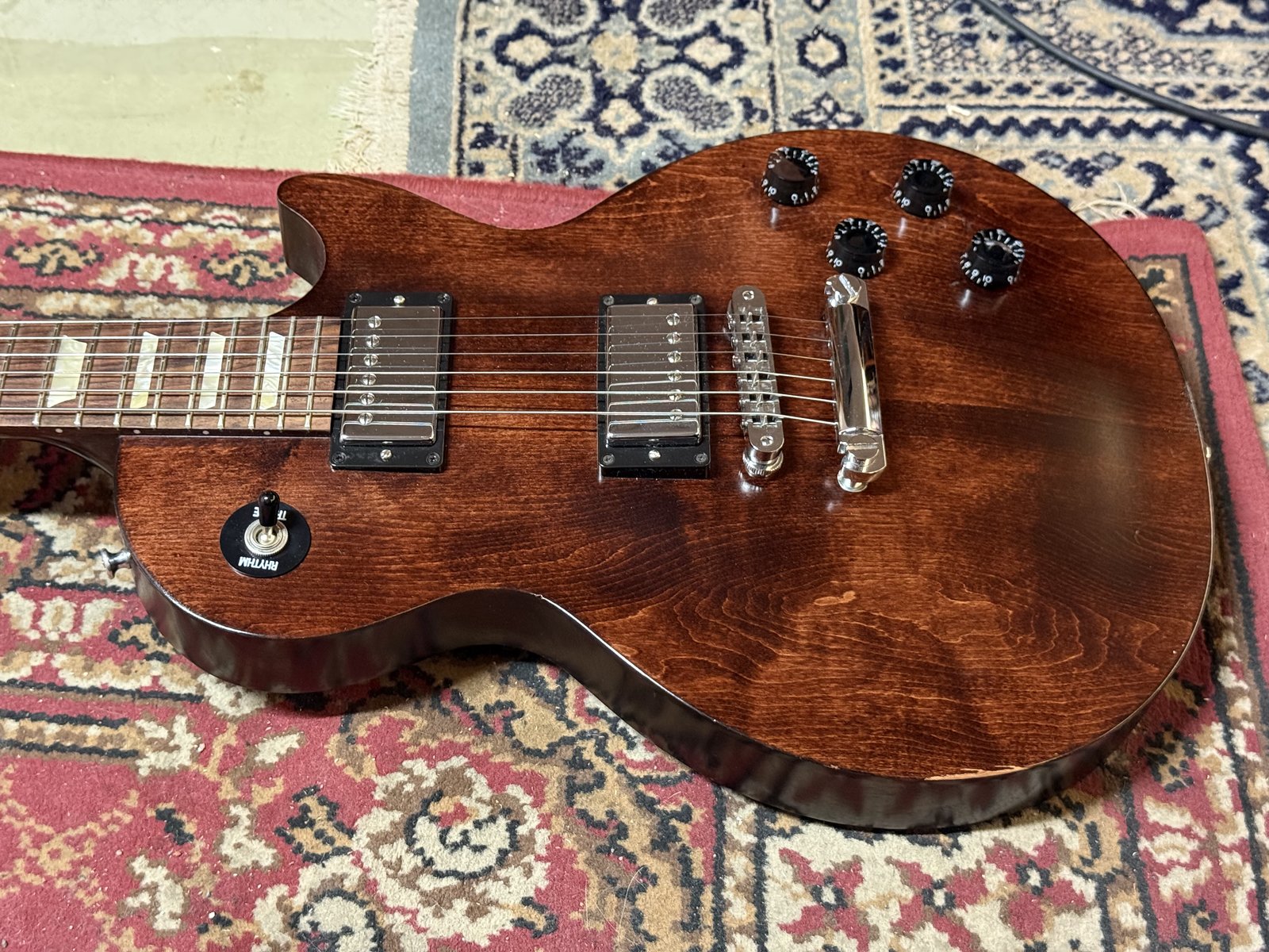 Harvinaisempaa Gibsonin USA-tuotantoa eteenpäin, eli 2013 vuoden LPJ Deluxe (limited run) kulahtaneen suklaan väreissä. Kyseisestä LTD-mallista löytyy lisäherkkuina mm. Burstbucker Pro -mikrofonit ja USA vintage -virittimet. Käytännössä tämä malli vastaa maalipintaa lukuun ottamatta Studio-mallia, mutta kaula on mahongin sijaan vaahteraa - molemmat ovat itselleni ainakin plussia. Ikäisekseen erinomaisessa kunnossa nauhoja myöten ja soi kauttaaltaan ongelmitta. Kitara on hyvissä säädöissä 11-49 setille (Standard E) ja valmis soitettavaksi. Speksejä: - Vaahterakaula ja kansi - Mahonkirunko - Ruusupuu-otelauta - Ohut nitrolakkaus - Rounded '50s -kaulaprofiili - Narrow Tall -nauhat - Tune-o-Matic -talla ja vintage-virittimet - Gibson Burstbucker Pro -mikrofonit - Paino ~3,9 kg. Mukaan tulee luonnollisesti alkuperäinen topattu kantopussi, säätöavain, sekä tehtaan lappuset. Koeajot järjestyvät joustavasti treeniksellä ydinkeskustassa, ja lähetys onnistuu pahvilaatikossa esim. matkahuollolla ostajan piikkiin. Vaihdossa kiinnostaa: - S-tyylinen laatukitara (Charvel, Friedman, K-Line, Suhr, Tom Anderson, Xotic, tmv) - Fender CS Stratocaster Soft V '54/57 -kaulalla - Fractal FM3 tai FM9 (mieluiten Mk2). Hinta: 800 € | |