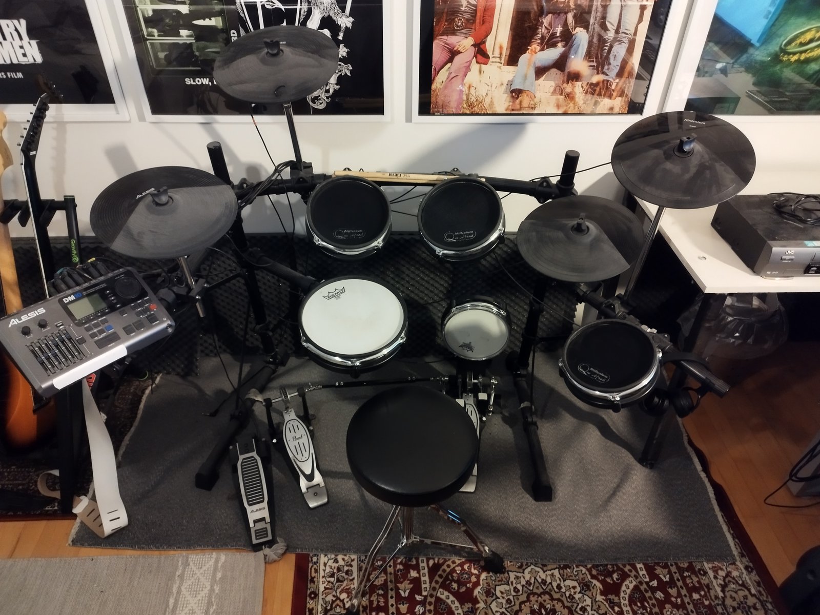 Vähäisen käytön vuoksi seuraavalle soittajalle. Ei uusinta tekniikkaa, mutta hyvä ja toimiva setti. Itsellä ollut käytössä demojen teossa sekä perustreenaamisessa. Pieniä käytön jälkiä on, mutta kaikki padit toimivat. Kuvan tuplapedaalit ja penkki kuuluvat diiliin sekä lisäksi yksi tom-padi joka ei ole kuvissa. Kaikissa tomeissa verkkokalvot. En postita; joko nouto tai toimitus lähialueelle sovittaessa. Kuljen tasaiseen myös Lappeenranta-Varkaus-väliä joten sinne suuntaan onnistuu myös sovittaessa. Hinta: 320 € | |