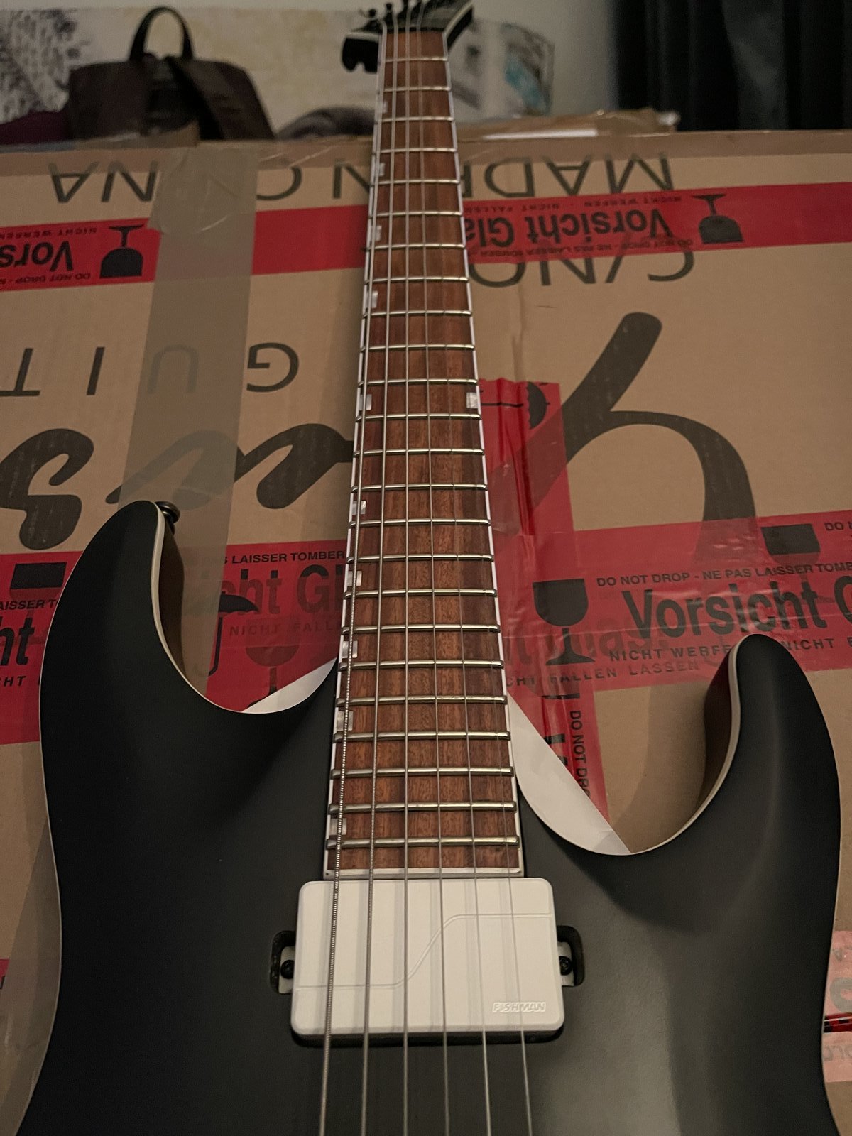 Mighty 27” baritone. Neck through, mahogany. With fishman fluence modern - 700 EUR With emg 81/85 - 550 EUR Trades for ibanez multiscale. Hinta: 550 € | |