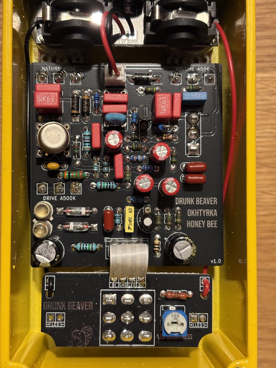 | In theory a really cool take on the legendary Honey Bee. However, this one is defective and sounds more like a starved/biased fuzz. I've been in contact with Drunk Beaver and they suspect a semiconductor failure like FET or BJT transistor. Since this is part of their limited pedal drop series, I feel it should be brought back to its intended sound if someone would like to take on the project. Pickup in Espoo or Posti (+7,90¤) Hinta: 50 € | |
