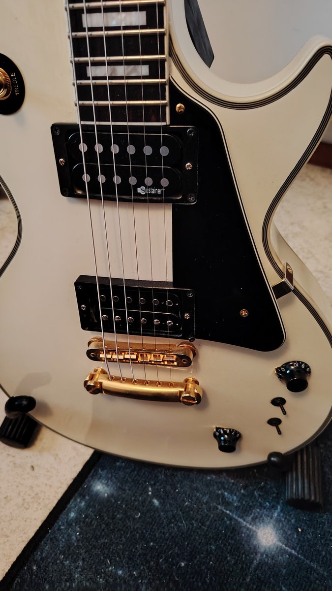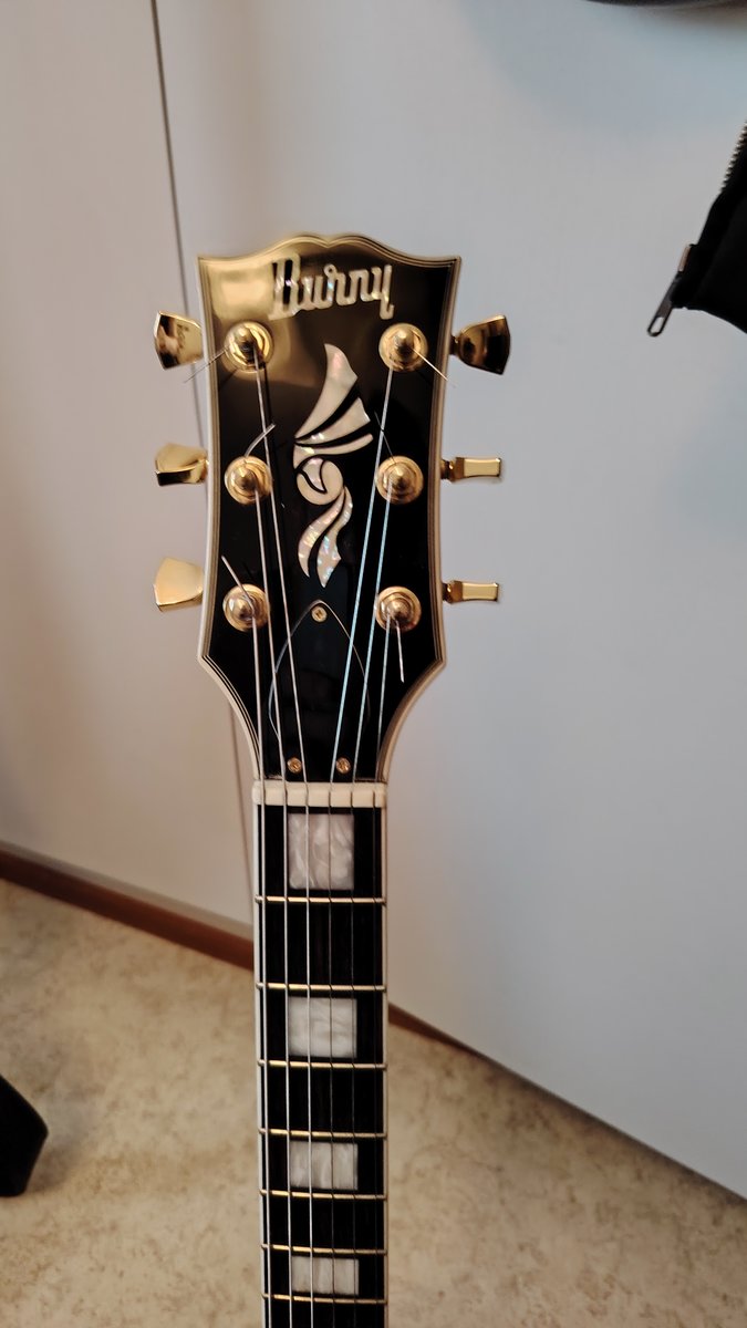 Burnyn upea näkemys Les Paulista. Kaulamikkinä on sustainer, jonka saa kahdella kuvassa olevalla vivulla ulvomaan ikuista nuottia, joka mahdollistaa viulumaisia äänimaailmoja. Ostettu Kitarakuusta käytettynä. Iästä ei ole tarkkaa tietoa, mutta kellastuminen kertoo usean vuosikymmenen iästä. Ostajalle 21 euron lähetyskulut. Pikaviestiä tai mailia #einorapidsmusic ät Gmail com Hinta: 680 € | |