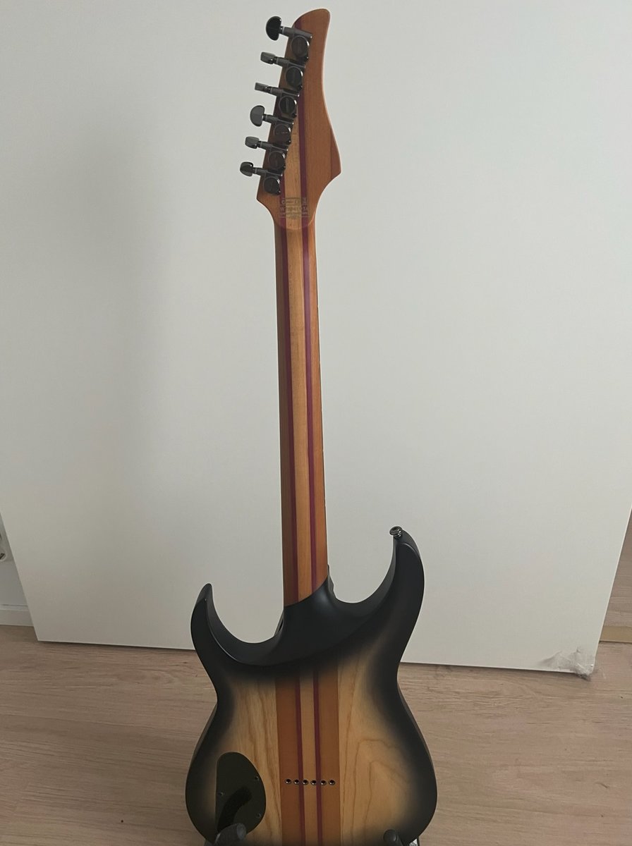 Selling guitar in a great condition, one small scratch and shiny spot. Been played only at home. Selling only because of financial situation. Specs: Body: Body Material: Swamp Ash Body Finish: Fallout Burst Colour: Black Neck & Fingerboard: Neck Material: Roasted Maple/Purpleheart Multi-ply with Carbon Fiber Reinforcement Rods Neck Finish: Natural Neck Shape: Ultra-Thin U Fingerboard Material: Ebony Fingerboard Radius: 12”-16” Compound Radius Fingerboard Inlays: Offset Roman Numerals Number of Frets: 24 Fret Size: X Jumbo Stainless Steel String Nut: Graph Tech Black XL Tusq Nut Width: 1.653" Scale Length: 25.5" Hardware & Electronics: Hardware Colour: Black Chrome Tuning Machines: Schecter Locking Bridge: Hipshot Ibby HM Guitar Bridge Control Knobs: Metal Knurled w/ Set Screw Pickup Configuration: HH Bridge Pickup: Lundgren M6 Neck Pickup: Lundgren M6 Controls: Volume/Tone (Push/Pull) Pickup Switching: 3-Way Switch More about it https://www.gear4music.fi/fi/Kitara … r-Banshee-Mach-6-Fallout-Burst/3B7Q Strings 10-46 Try out and pick up near Pitäjänmäki station Hinta: 1300 € | |