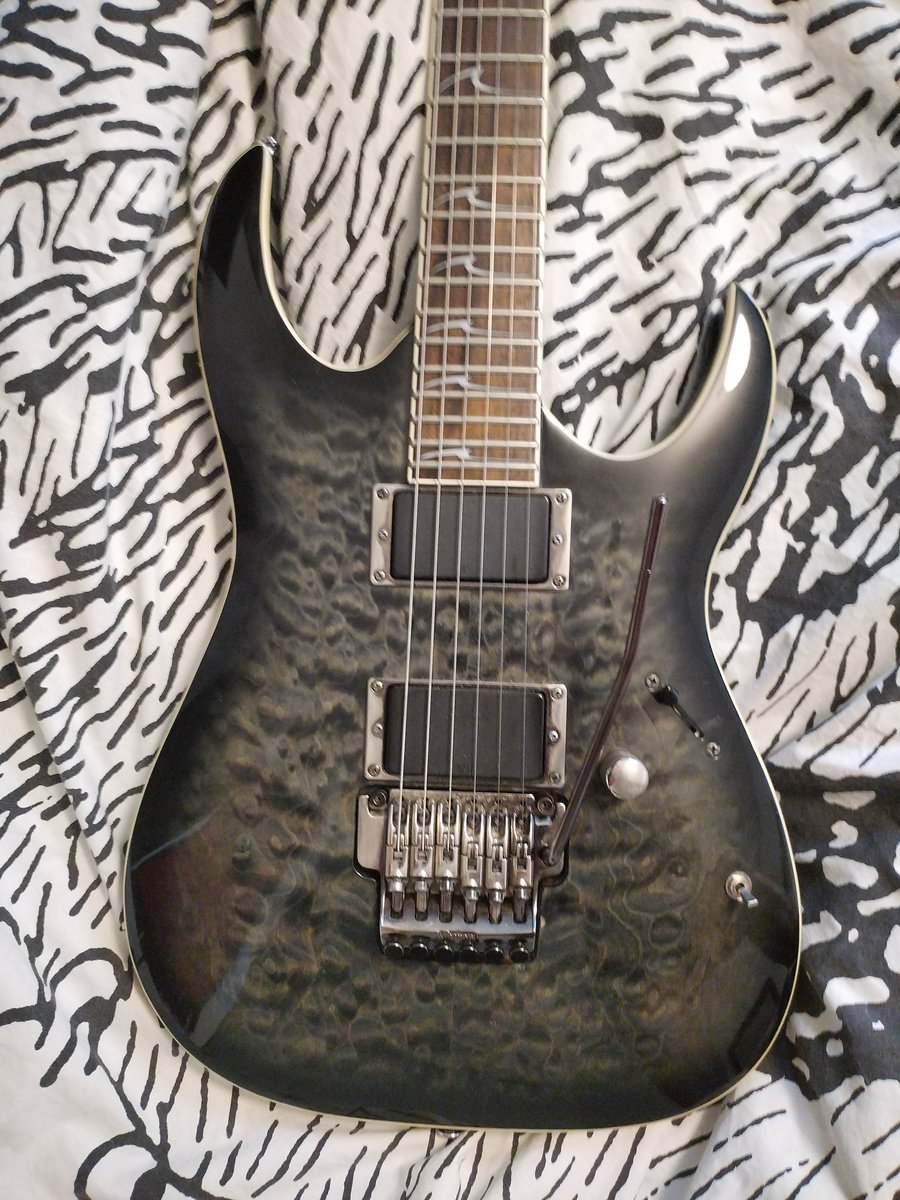 Siistikuntoinen ja hyväsaundinen sähkökitara monen tyyliseen soittoon. Mahonki body vaahtera kannella. 3-osainen titaanilla vahvistettu vaahtera kaula. 24-XL nauhaa. Ibanez LoZ aktiivi humppari mikit, aktiivi eq. Edge III tremolo. Mukaan gigbag. Lähetys onnistuu. Hinta: 320 € | |