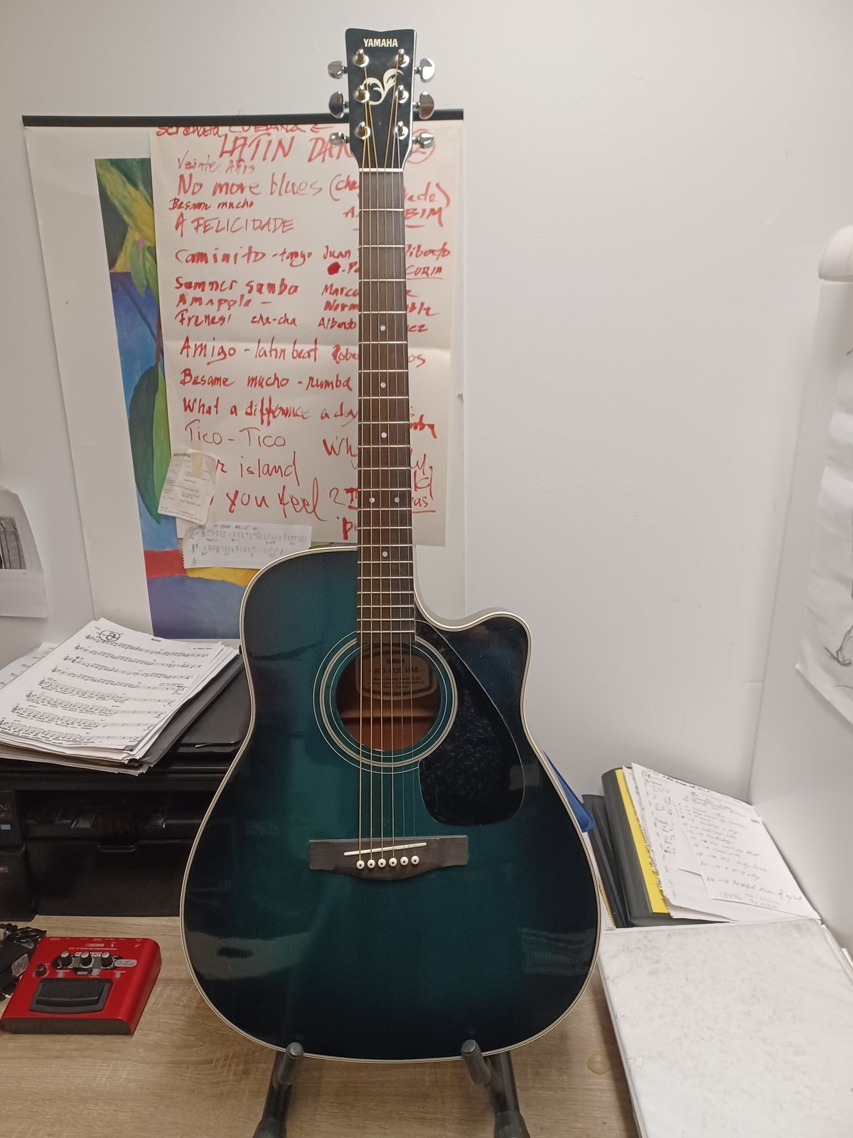 Kuin pakasta vedetty, syvän vihreä YAMAHA FGX 412C MAB. Elektroniikka toimii upeasti, Tolsan trimmaama, voi heittää vaikka stadion keikan. Tästä peli joten ei muuta kun sommittelemaan maailmoja syleileviä molliistygejä. Syystarjous 300¤. Vantaa Koivukylä 0400-451756. Hinta: 300 € | |