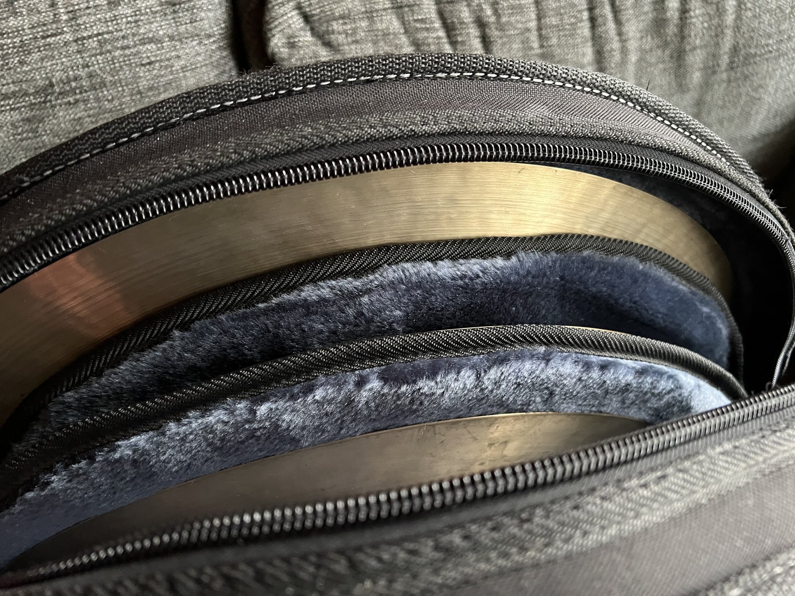 Jykevä symbaalilaukku ylimääräisenä. Edessä taskut 14” haitsuille ja 16” crashille, pääosastossa kaksi jakajaa ja tilaa usealle symbaalille. Haitsutaskusta vetimet irronneet ja kantohihnasta toiselta puolelta klipsi kadonnut ja hihna sidottu kiinni. Muuten erittäin siistissä kunnossa. Vain nouto Helsingin Kivikosta. Hinta: 75 € | |