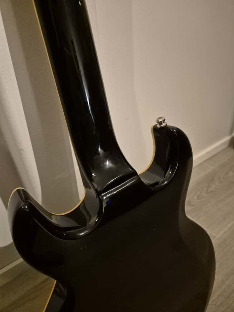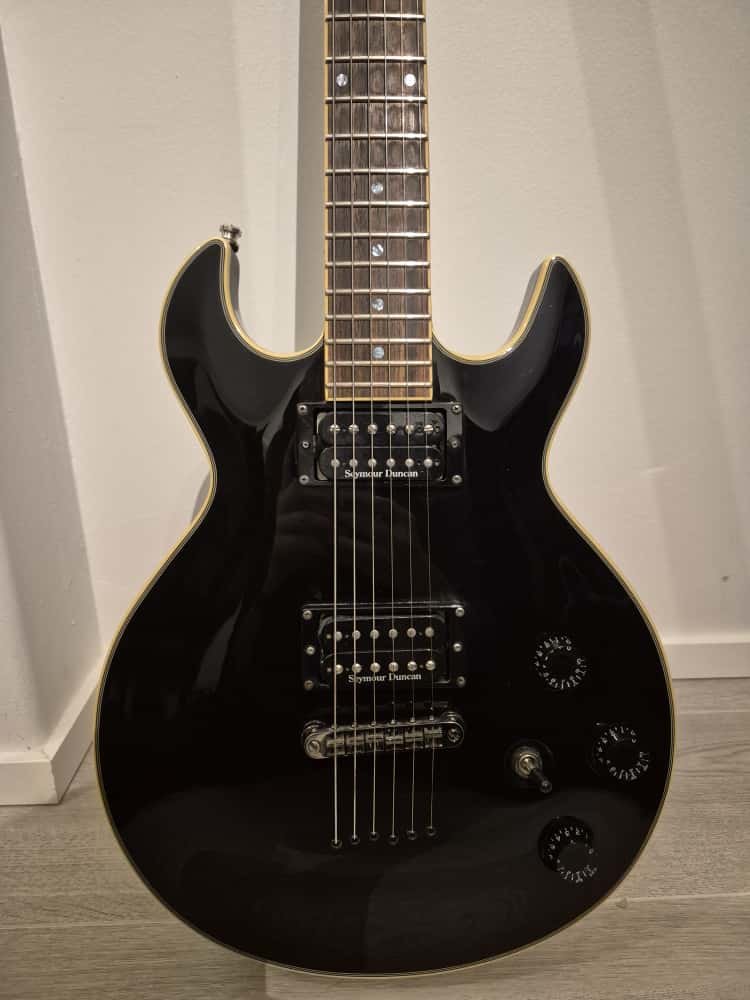 Hyvin palvellut ja hyvässä kunnossa oleva Schecter etsii uutta omistajaa. Soundeiltaan hyvin Les Paul-tyylinen mahonkirungon ja pitkän sustainin ansiosta hieman SG:ltä lainatulla ulkomuodolla. Mikkikombon ja soitettavuuden puolesta todella monipuolinen soitin rock/metalli/pop käyttöön. Seymour Duncan JB (SH-4) / '59 (SH-1N) mikit 25,5" skaala 22 X-Jumbo nauhaa Vol/Vol/Tone säädöt + Tone-nupissa push/pull coil-split Tune-O-Matic talla josta kielet rungon läpi Grover virittimet 3-asentoinen mikkivalitsin Alunperin ostettu uutena -09, joten käytöstä tulleita naarmuja tai muita jälkiä siellä täällä, jotka huomaa käytännössä vain valoa vasten tarkastellessa. Säännöllisesti puhdistettu ja hyvänä pidetty, ja elektroniikat täysin toimivassa kunnossa. Mielellään nouto, toimitus Oulun alueella onnistuu kohtuullisen matkan päähän. Testaamaan pääsee sovittaessa. Hinta: 520 € | |