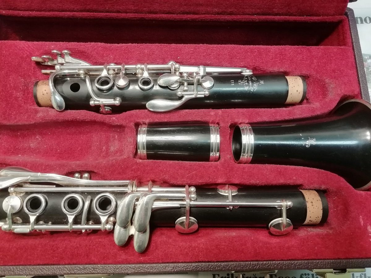 Bb klarinetti, Buffet crampone E11, valmistettu Saksassa. Tiivis eikä ole halkeamia. Valmistettu noin 2007 sarja numero 831###. Hopeoitu koneisto. Ei suukappaletta. Kaikki osat alkuperäisiä. Hinta: 500 € | |