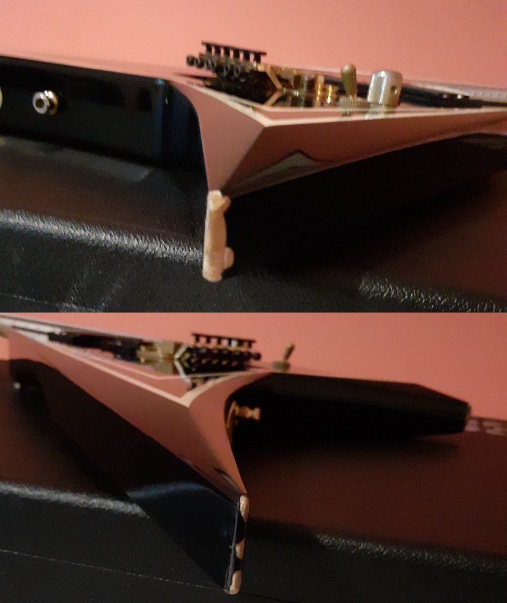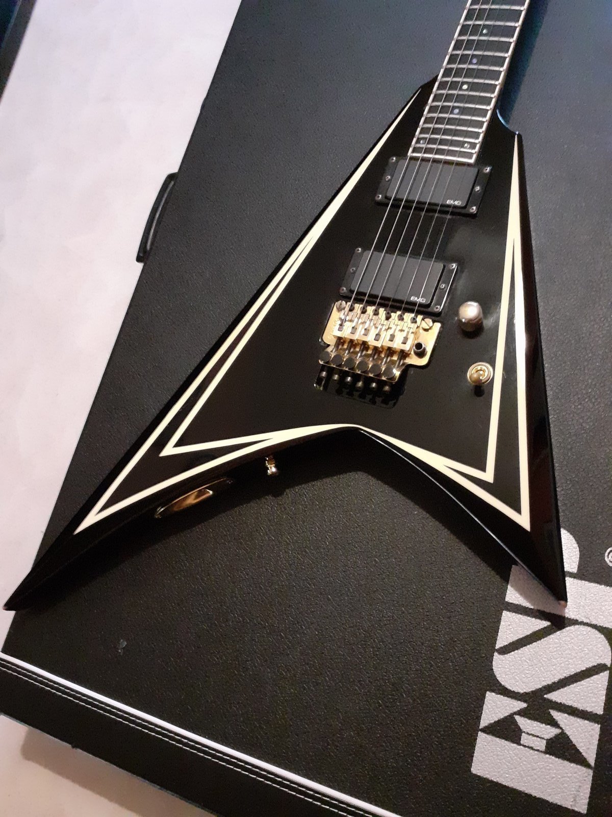 Sarjanumeron perusteella vuosimallia 2004, laadukas japanilaisvalmisteinen keihäs. Ostettu käytettynä 6 vuotta sitten täältä m.netistä. Käytön jälkeä on, sakaroista päätellen kitaralla on vauhdikkaampi menneisyys mutta sen suuremmilta dingeiltä on onneksi vältytty. Kaula on suora ja kaularauta toimii. Floikka pitää vireen hienosti. Hyvä ja hieno soitin mutta valitettavasti täytyy tästä helmestä luopua Vanha löysä volumepotikka ja mikkikytkin vaihdettu uusiin. Tallapalat myös vaihdettu Schallerin vastaaviin. Orkkis palat halutessasi mukaan mutta ainakin E ja A palojen kieliura niin kulunut että katkovat nopeasti kampea käyttäessä kielen OFR, 24 jumbo nauhaa, 12" radius, eeben otelaudalla, EMG81 aktiivimikit. Tarkemmat speksit löytynee netistä. Kaularaudan suoja ja takapleksi mukaan Mukaan espin kova laukku. Nouto etusijalla mutta lähetyskin onnistuu. Ei tarvetta vaihdokeille Hinta: 1800 € | |