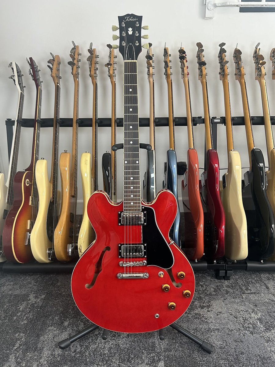 Hei Haluaisin ostaa japanilaisen Tokai ES:n. Esim. ES-145, ES-168, ES-178, ES-195 tai vastaava. Värinä oltava ehdottomasti punainen (cherry red). Mustat ja Brown Sunburst värityksellä olevat eivät käy. Ruusupuinen otelauta etusijalla, mutta hyväksyn eebeninkin block-upotuksilla. Mielellään mahdollisimman alkuperäisessä kunnossa, mutta jos mikkejä ja elektroniikkaa on päivitetty, niin se on ok. Nauhojen ja kaulan oltava bueno! Ethän tarjoa korealaisia, kiitos. Ei niissäkään mitään vikaa ole, mutta halajan suurena MIJ-kitaroiden fanina ehdottomasti japaniinialaisen soittimen. Hintaluokka jossain 1000-1500 euron hujakoilla. Pikaviesti tai madventures AT gmail PISTE com | |