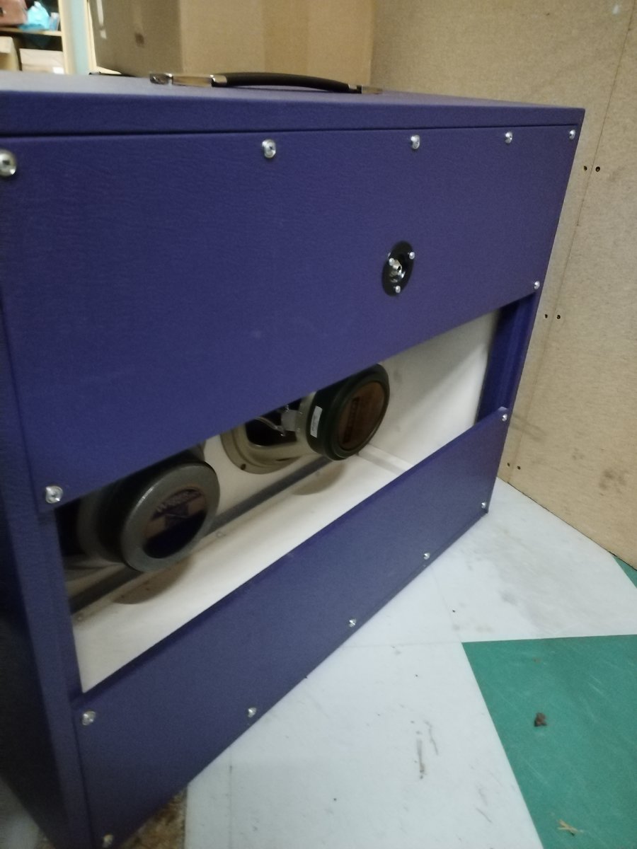 Käyttämättömyyden ja tilan puutteen vuoksi myyntiin avoin 2x12-kitarakaappi violetilla tolexilla. Kasattu erittäin asiallisesti pomminkestävästä koivuvanerista. Elementteinä vähänkäytetyt celestion greenback M ja weber c1230-55. Impedanssi 8 ohm ja tehonkesto 50w. 2.kuvan nuppi antamassa refenssiä mitoista. Kaappi on iskemättömässä kunnossa. Ei keikkailtu, lähinnä testattu toimivaksi ja hyvältä saundaavaksi, mutta jäänyt vaille kunnollista käyttöä. Voin myydä myös tyhjänä hintaan 50e. Elementtien kanssa 180e. Elementtejä en myy erikseen. Vaihdossa saa ehdottaa kitarapedaaleja. Testailut onnistuu Tampereella reeniksellä. Nouto etusijalla, voin tuoda myös sovitusti lähialueelle. Hinta: 180 € | |