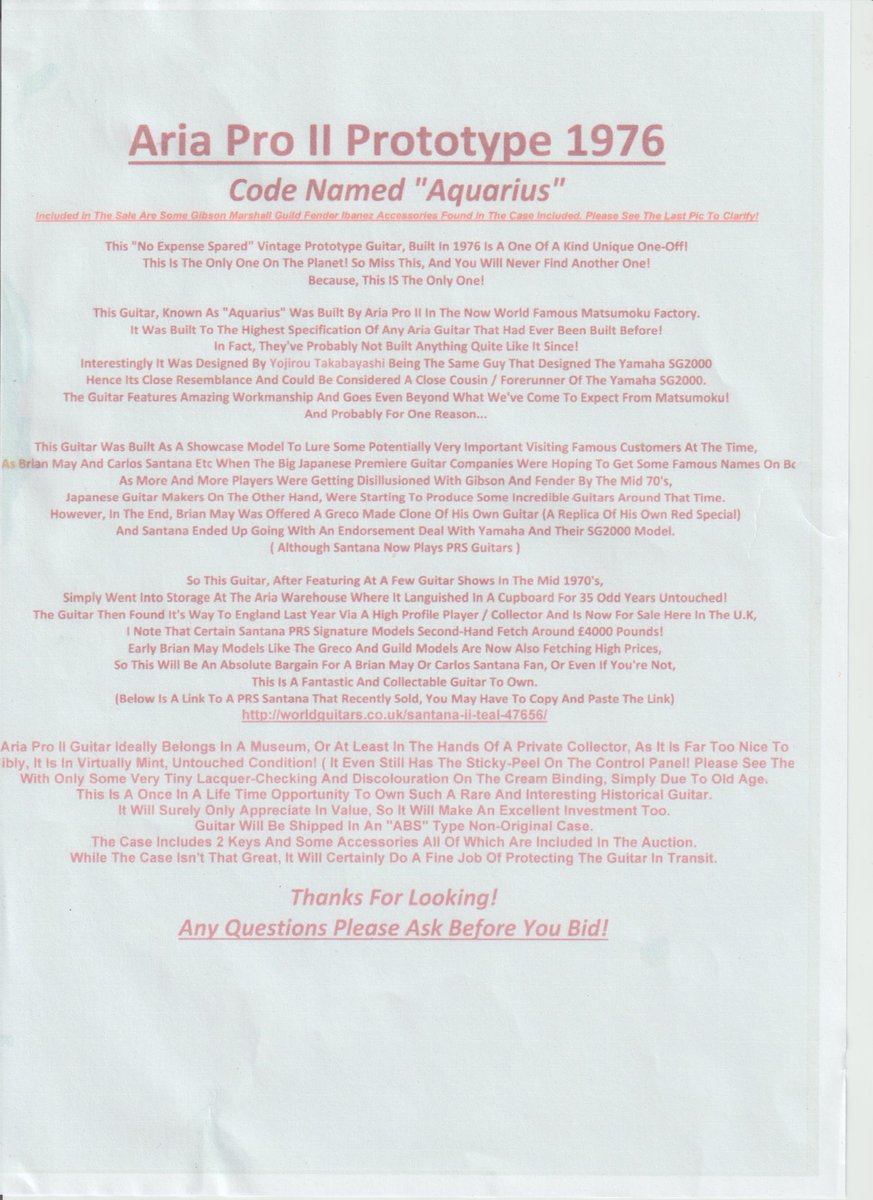 Myydään: Aria Pro II Aquarius 1976 Prototype, TARJOUSKAUPPA | |