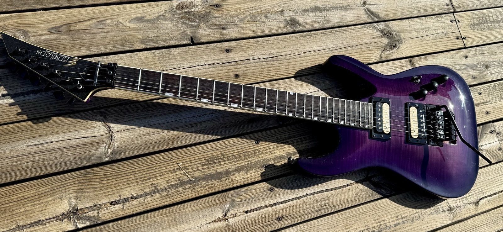 | Komea katseenvangitsija ysärin japanin markkinoilta, harvinainen lawsuit lapa ja ja kapea aika Jackson-tyylinen ohut kaulaprofiili. Pientä naarmua on vanhus jo ehtinyt ottamaan, mutta kuten kuvista näkyy, ei mitään erityisen näkyvää tai pahaa jälkeä. Mikkeinä Seymour Duncan custom custom ja jazz Mukaan kuuluu myös kova laukku jossa lähetys onnistuu. Hinta: 1200 € | |